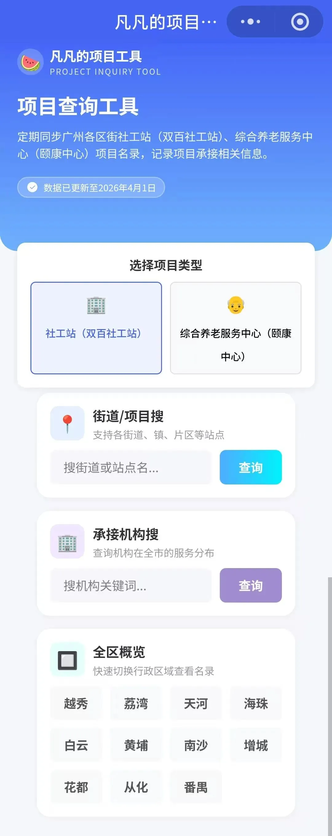 本号近期将继续连载深圳市各区党群服务中心的项目盘点,目前已整理好龙岗区、龙华区,完成全市后会将全市的统计放上来,并且收录到“凡凡的项目工具”小程序中(目前还未更新),可以微信搜一搜,先收藏。