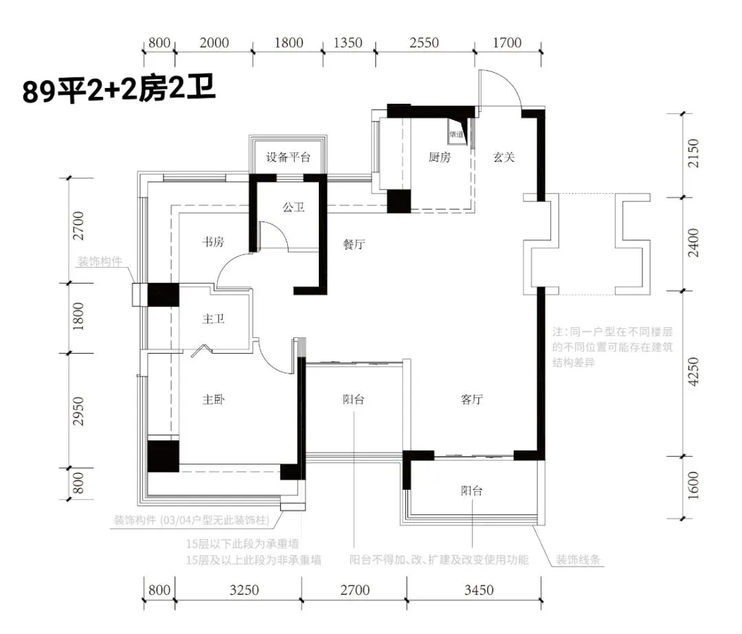1. 约89㎡ 4房2卫(“卷王”户型)
