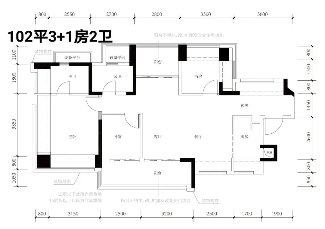 2. 约102㎡ 4房2卫(“均衡”改善)