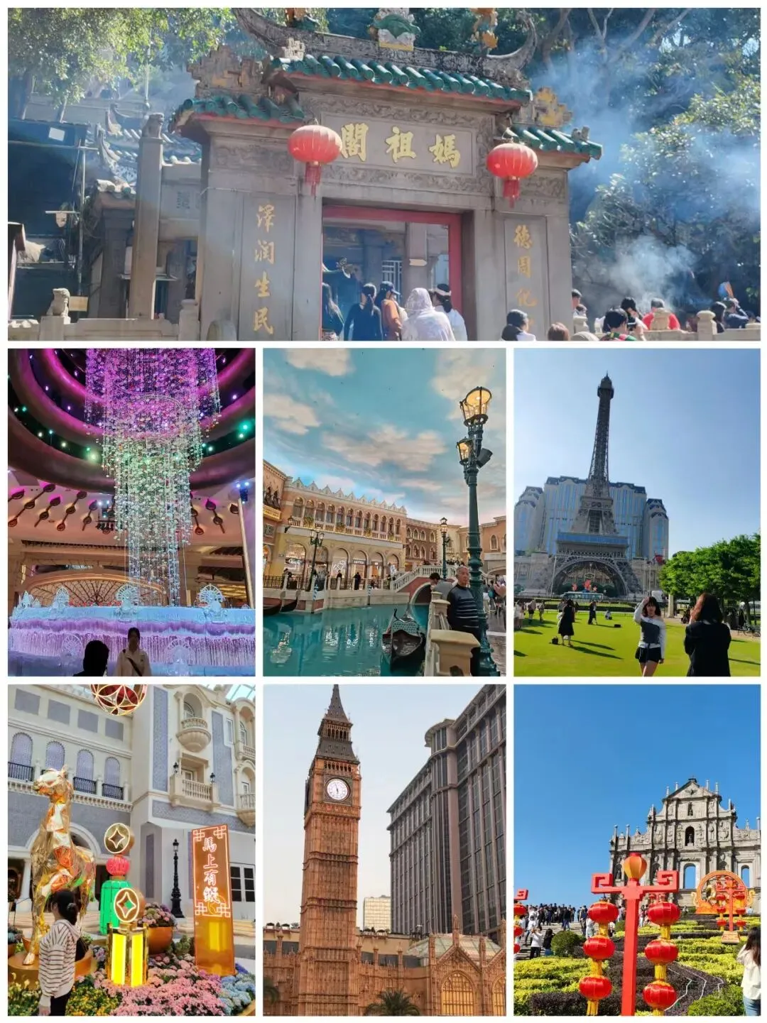 🚩深圳/广州/珠海/东莞集合➠ 珠海公路口岸➠ 大三巴渔人码头妈祖阁葡京人.澳门皇宫外景午餐银河钻石表演巴黎人铁塔威尼斯人度假城 返回