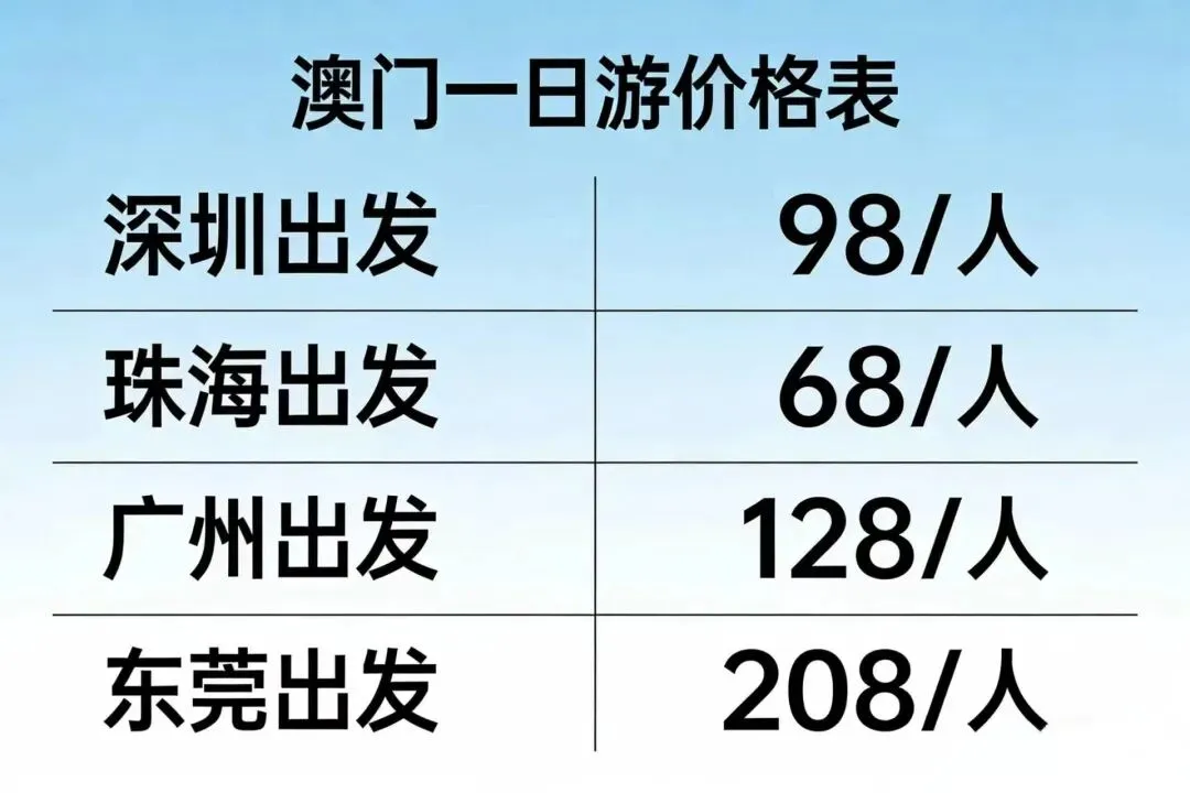 当前位置:首页>深圳>澳门旅游68元起·深圳/珠海/广州/东莞天天出发,含午餐及往返车费,打卡澳门大三巴·巴黎人铁塔等景点