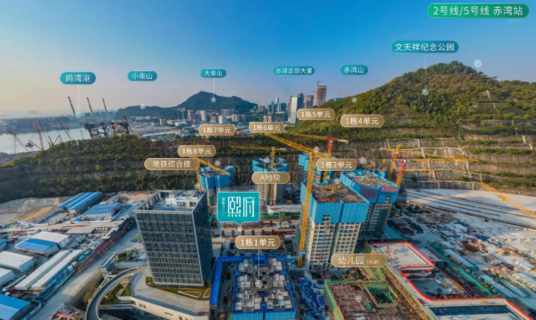项目位于深圳市南山区招商街道兴海大道以西、赤湾路以北、赤湾山南侧(地铁12号线左炮台东站)。该项目住宅塔楼为装配式建筑,室内为精装交付,预计交付时间为2026年12月31日。