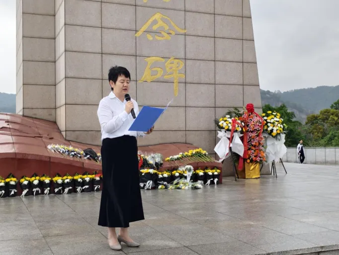 仪式上,宋鹏君副校长代表学校党委和全体师生发表了饱含深情的讲话。她指出,革命先烈用忠诚与坚守铸就了民族的脊梁,他们的英名永垂不朽,精神万古长存。作为深圳市体育运动学校的师生,我们肩负着“以体铸魂、以体育人、为国争光”的使命,要铭记先烈事迹,传承红色基因,把对先烈的崇敬之情,转化为奋发向上、勇攀高峰的动力。