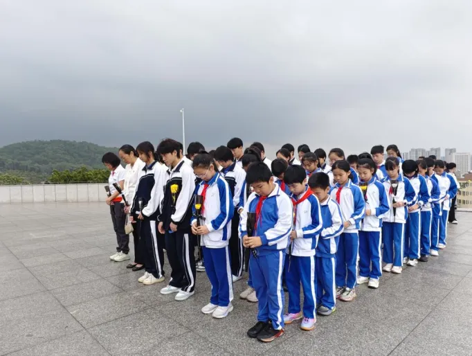 全体师生低头静立,为为国捐躯的革命先烈默哀一分钟。一分钟的静默,是跨越时空的对话,是对英魂最深切的追思与最崇高的敬意。