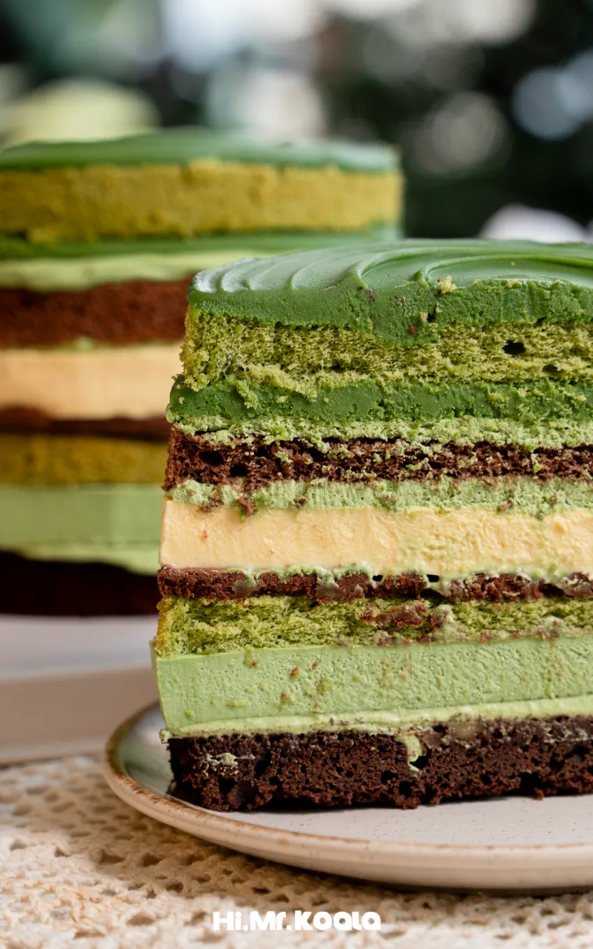 八重夹心太绝了!浓郁抹茶胚裹着顺滑生巧、Q弹奶冻、布蕾和巧克力,茶香醇厚不腻,口感超丰富,一口就沦陷,抹茶控必冲!