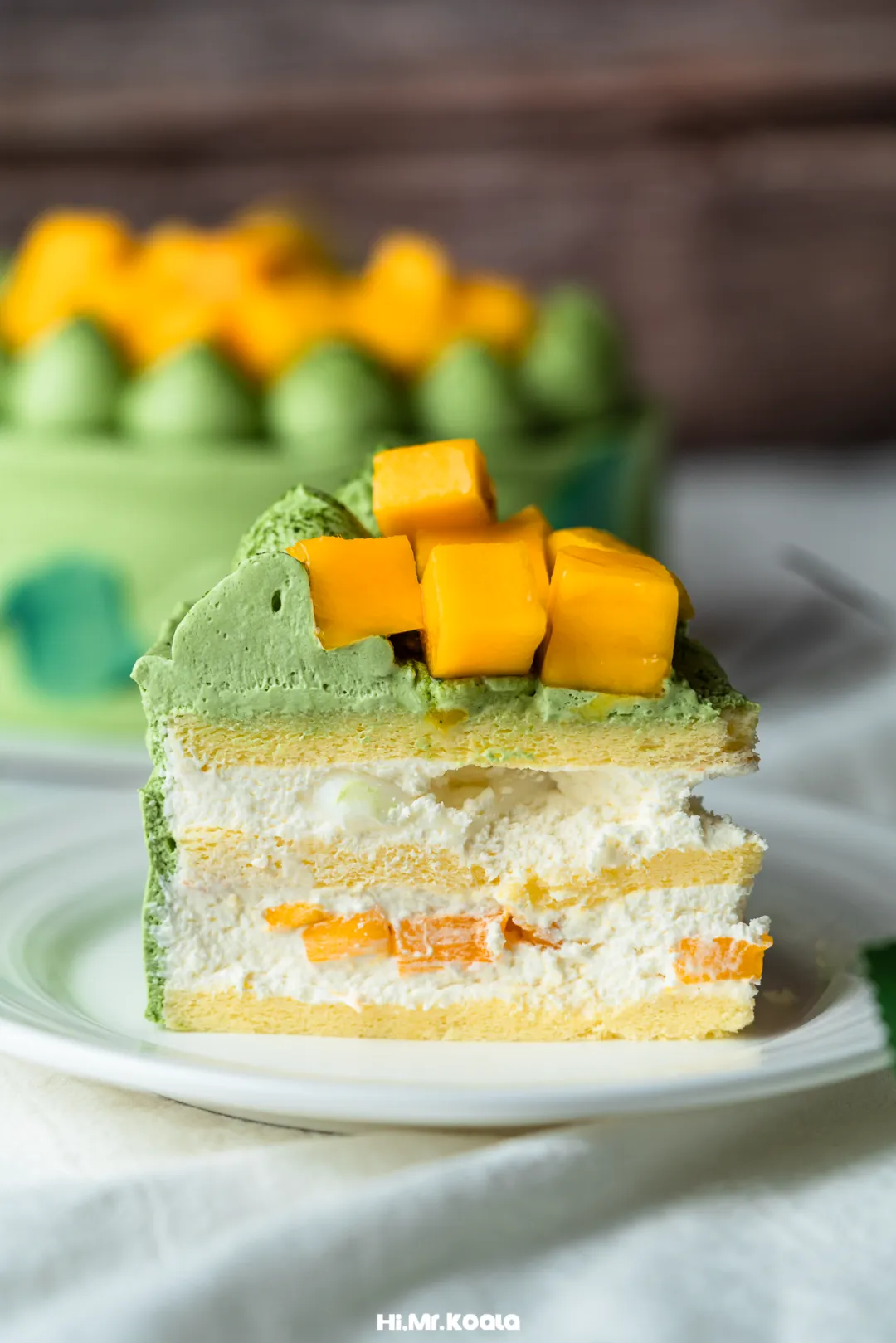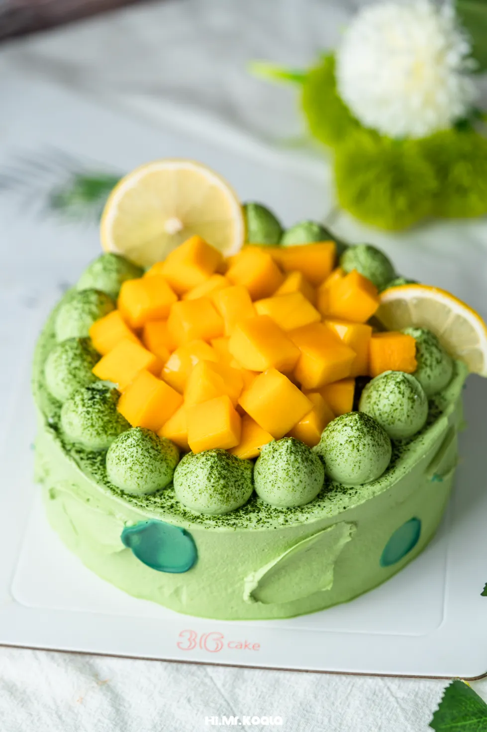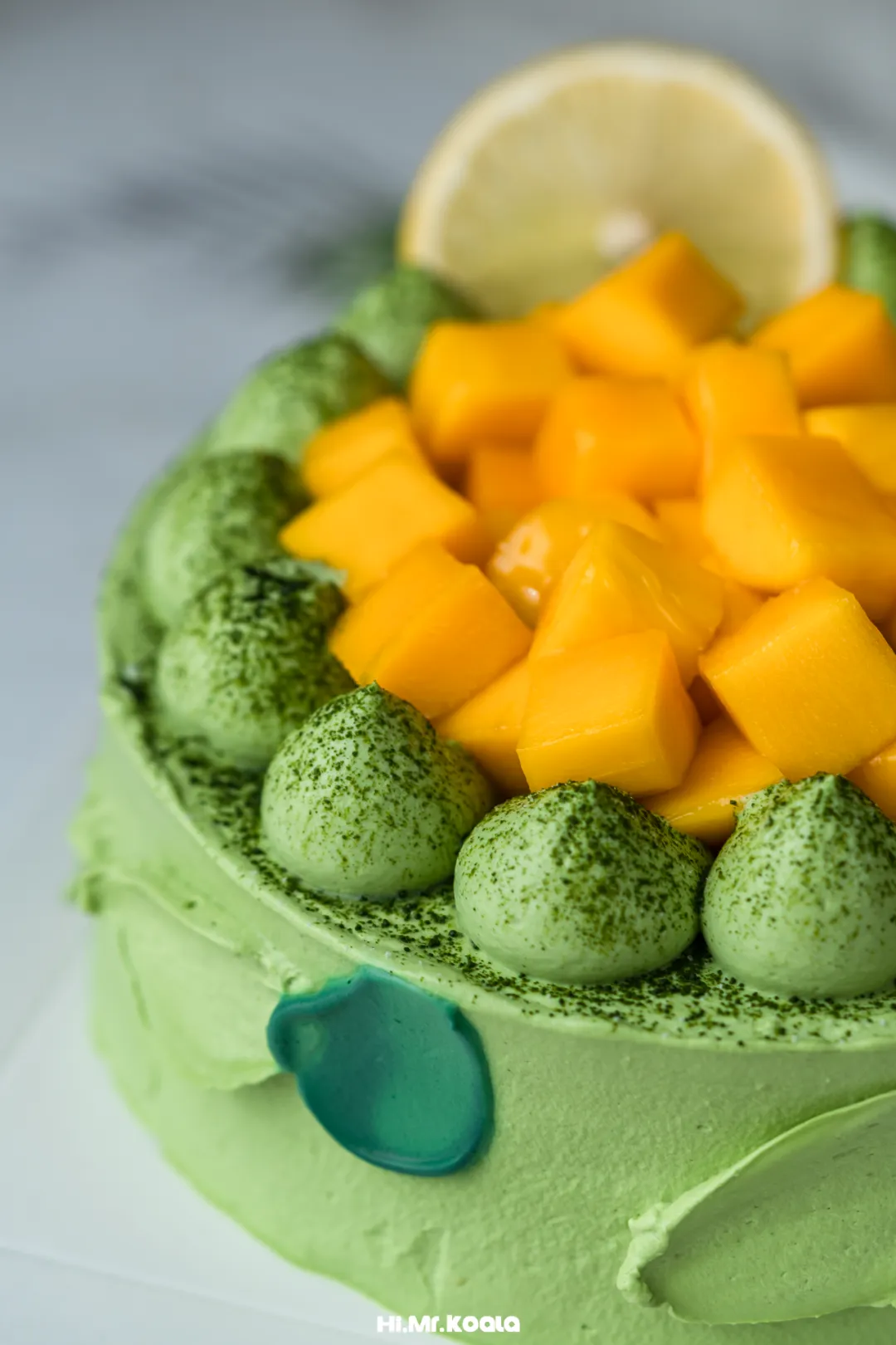 ◯ 原料精选:法国铁塔动物淡奶油、抹茶戚风胚、越南青芒