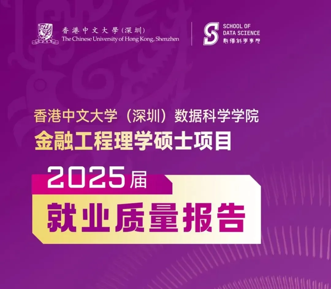 香港中文大学(深圳)数据科学学院正式发布2025届金融工程硕士就业质量报告,本届毕业生整体表现亮眼,就业数据创下新高,成为港校硕士项目中的标杆。