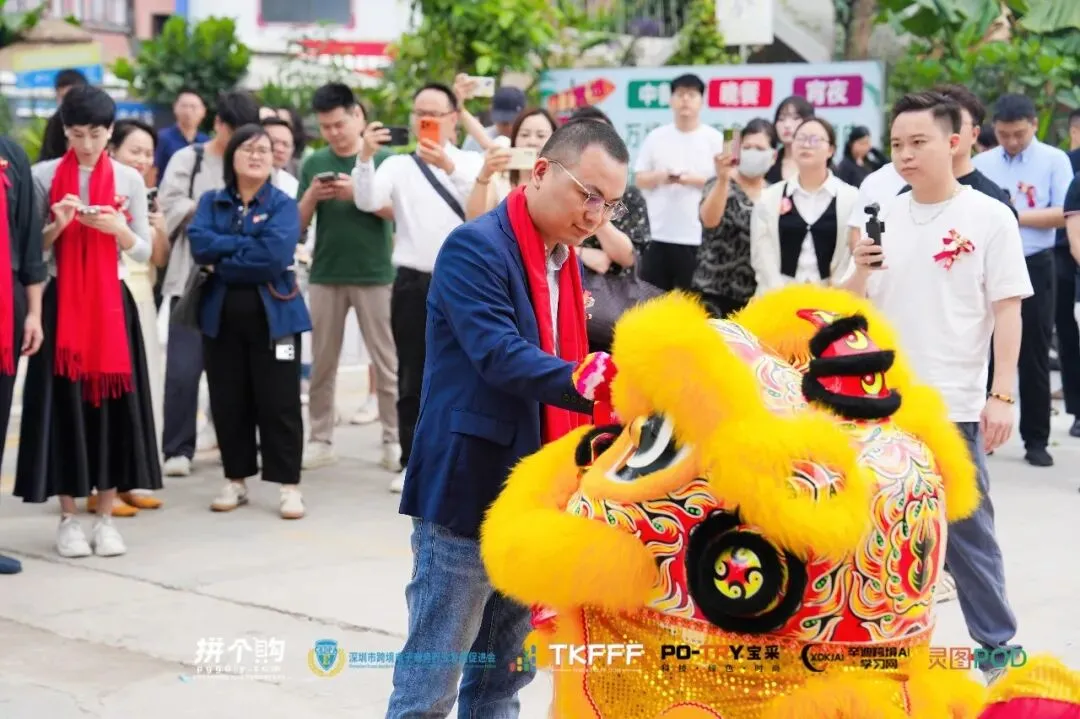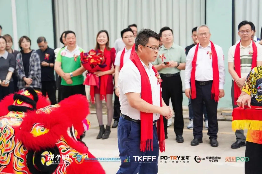 随后,徐元虎会长与王丽昇先生为醒狮点睛,祥狮献瑞,寓意拼个购大湾区POD产业生态众创空间事业兴旺、产业蓬勃发展,精彩的舞狮表演将现场氛围推向高潮,尽显开业盛典的喜庆与隆重。