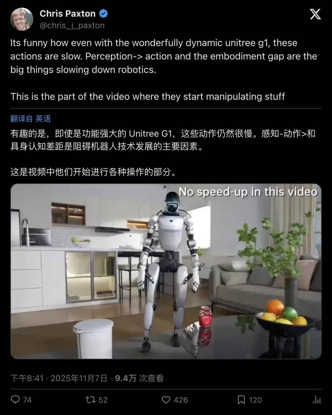 ▲ 卡内基梅隆机器人专家 Chris Paxton——"可能是我见过最强的家用机器人视频"