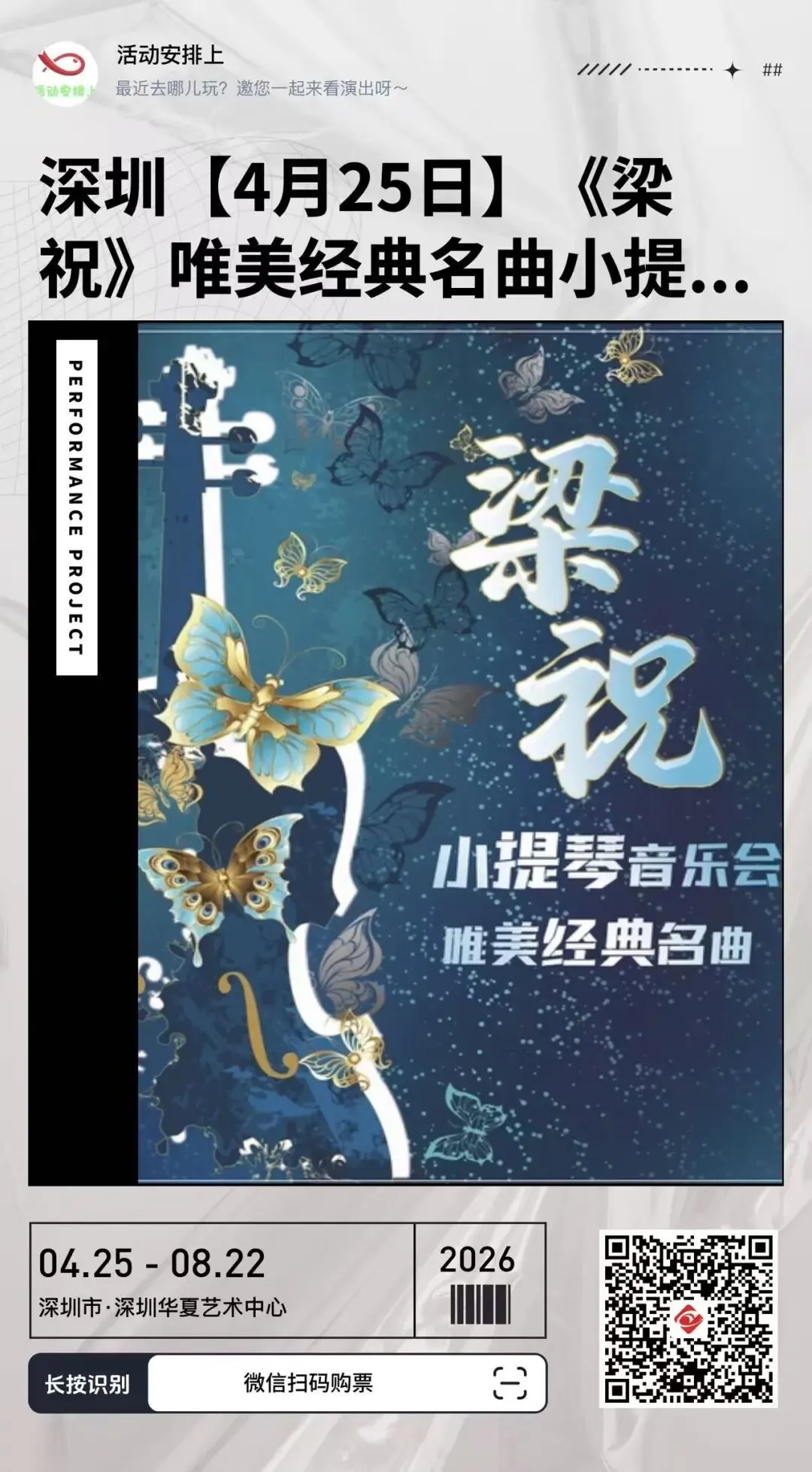 【深圳2026.04.25】《梁祝》唯美经典名曲小提琴音乐会