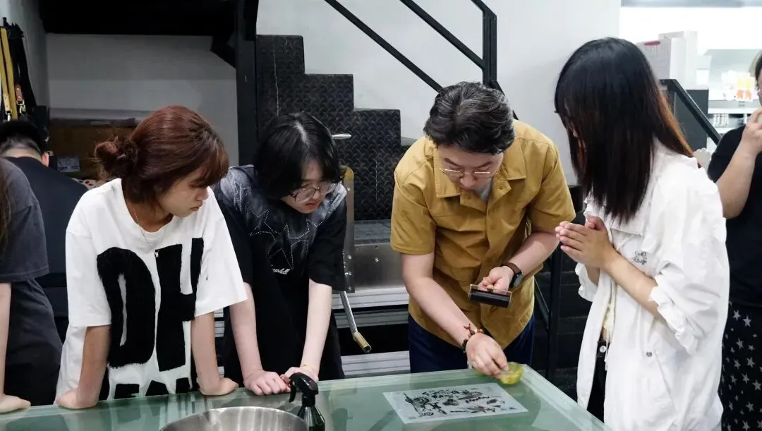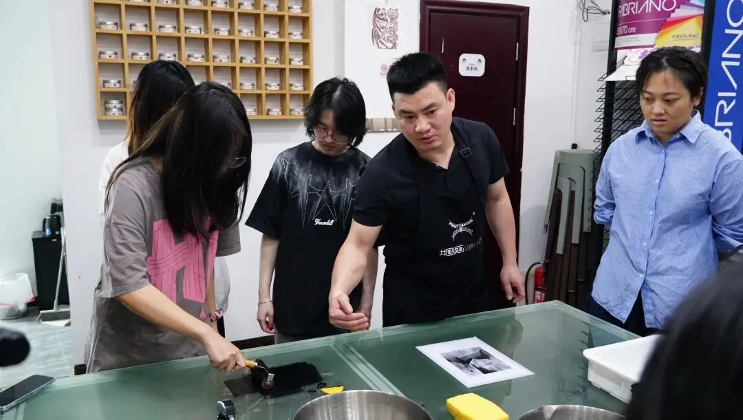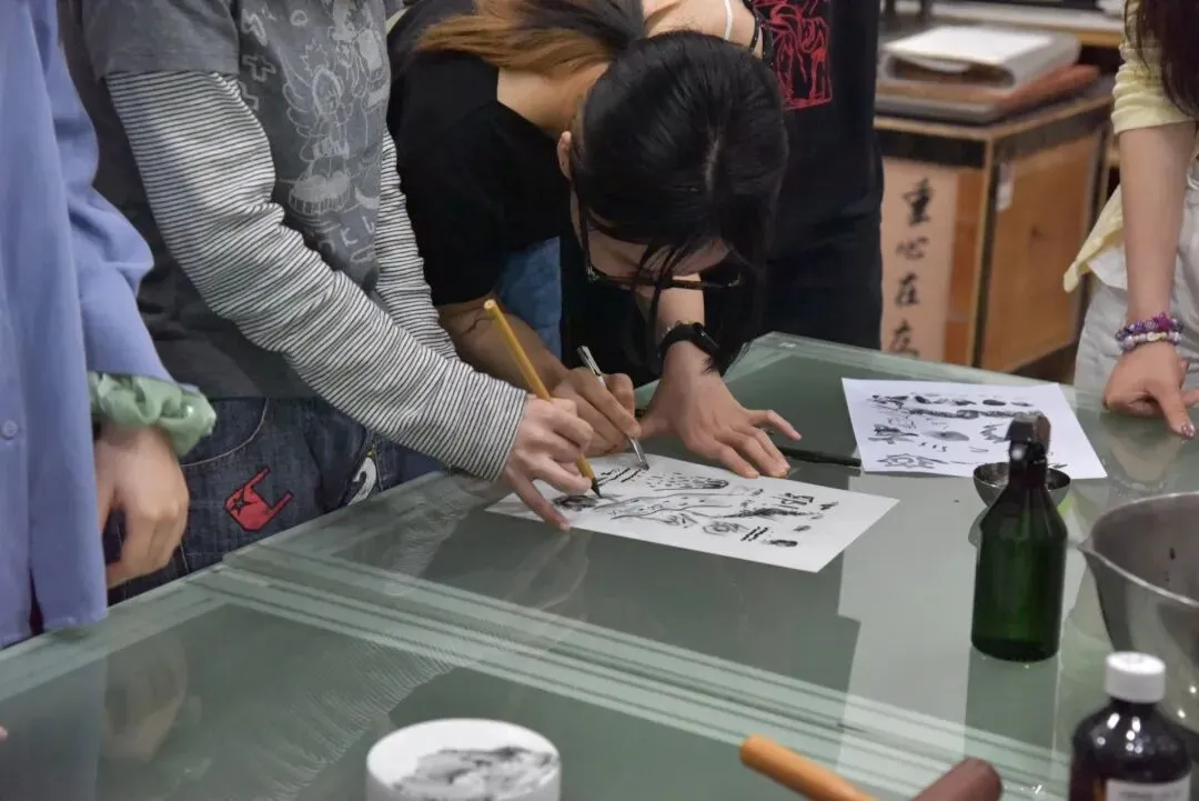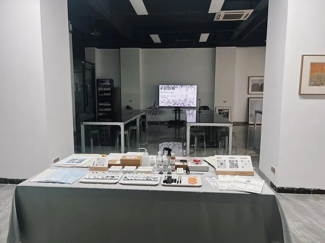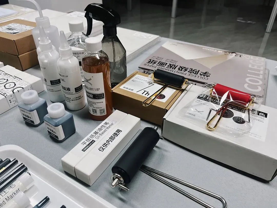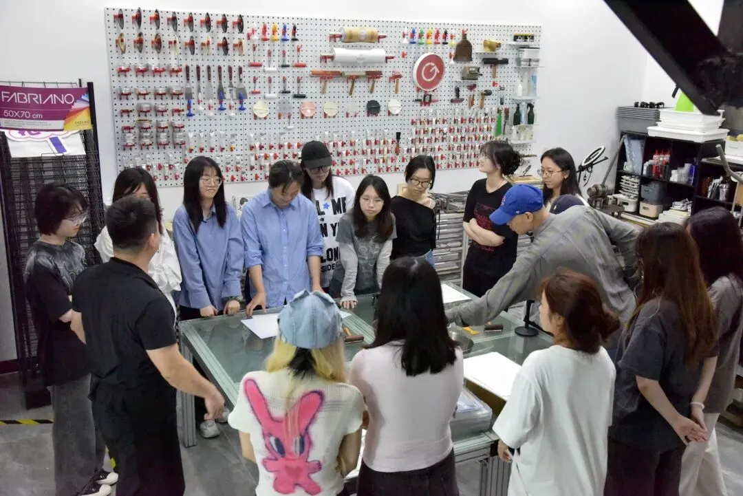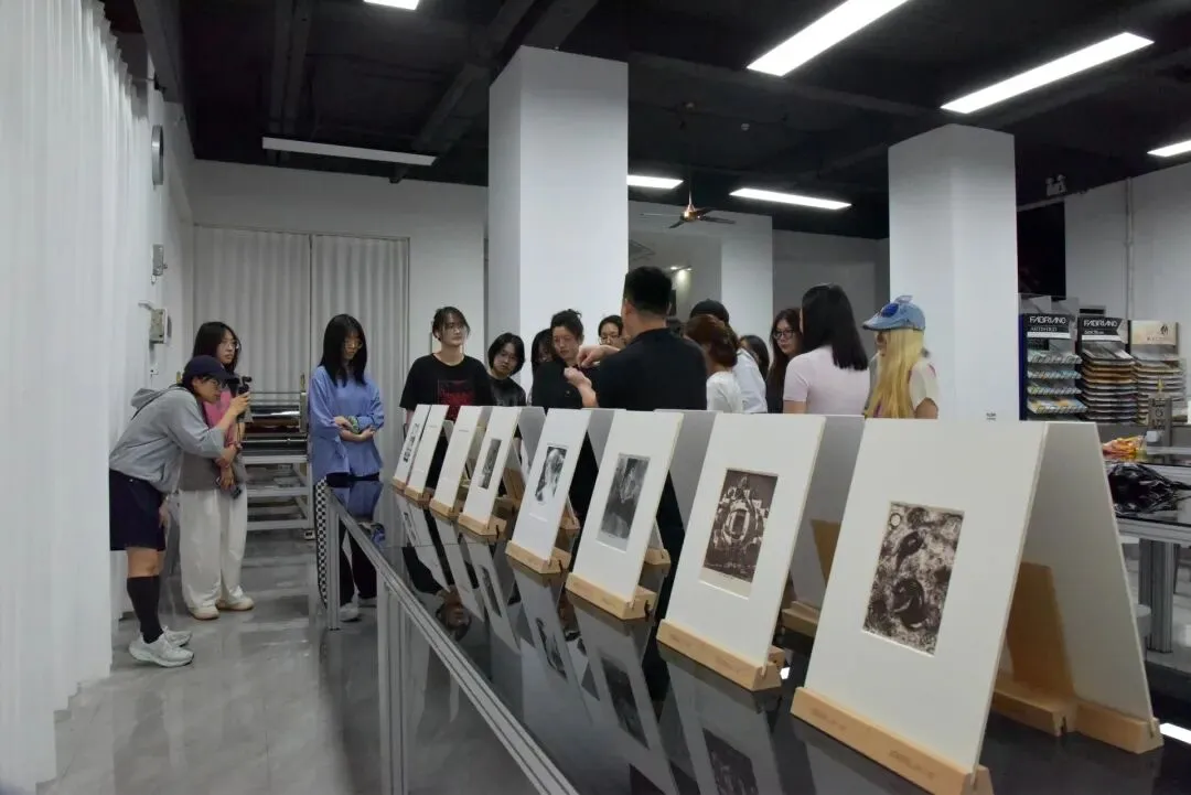 2026年4月3日下午,井田版画workshop迎接深圳大学艺术学部美术与设计学院的杨鹏程老师跟学生们,在有印文化一楼空间进行一次平版版画的课程介绍,展示了平版印版纸基的技法示范、平版版画的作品交流,让同学们对平版版画的基础知识有初步了解,对平版版画工具、材料的使用以及制作过程有更深刻的感受,为同学们后续创作平版版画作品做准备。