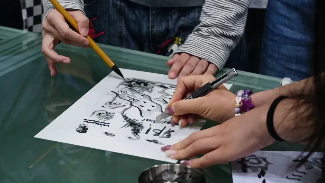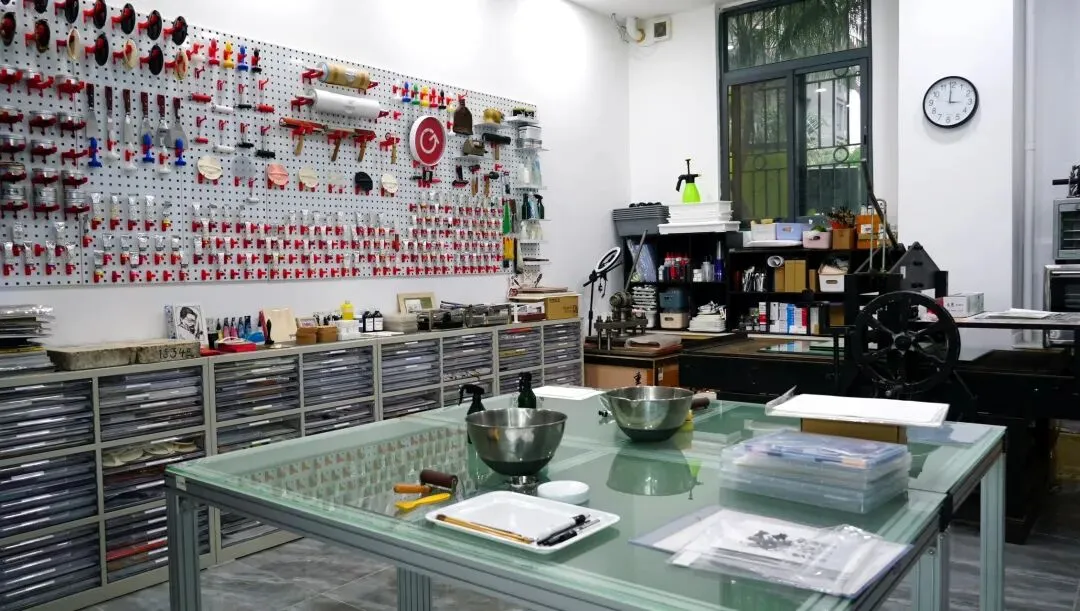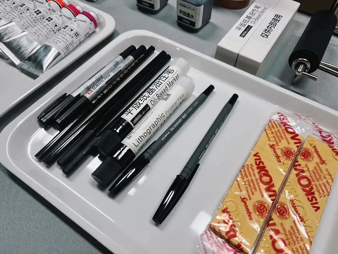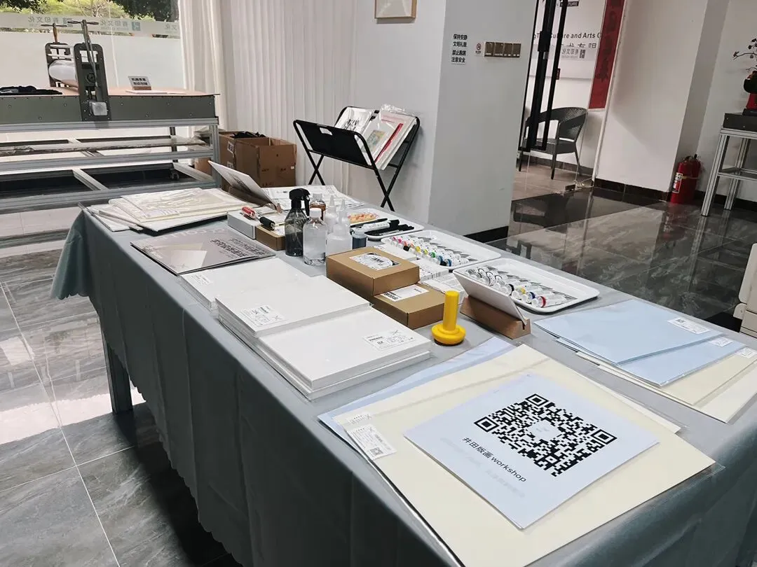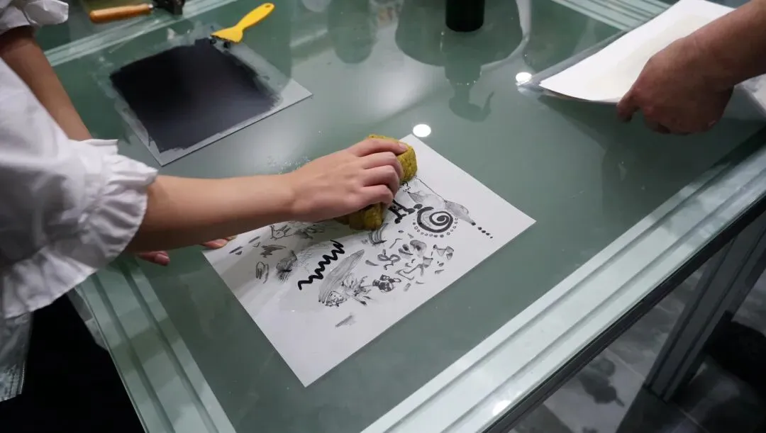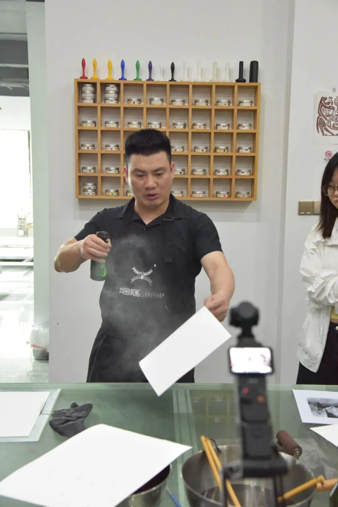 2026年4月3日下午,井田版画workshop迎接深圳大学艺术学部美术与设计学院的杨鹏程老师跟学生们,在有印文化一楼空间进行一次平版版画的课程介绍,展示了平版印版纸基的技法示范、平版版画的作品交流,让同学们对平版版画的基础知识有初步了解,对平版版画工具、材料的使用以及制作过程有更深刻的感受,为同学们后续创作平版版画作品做准备。