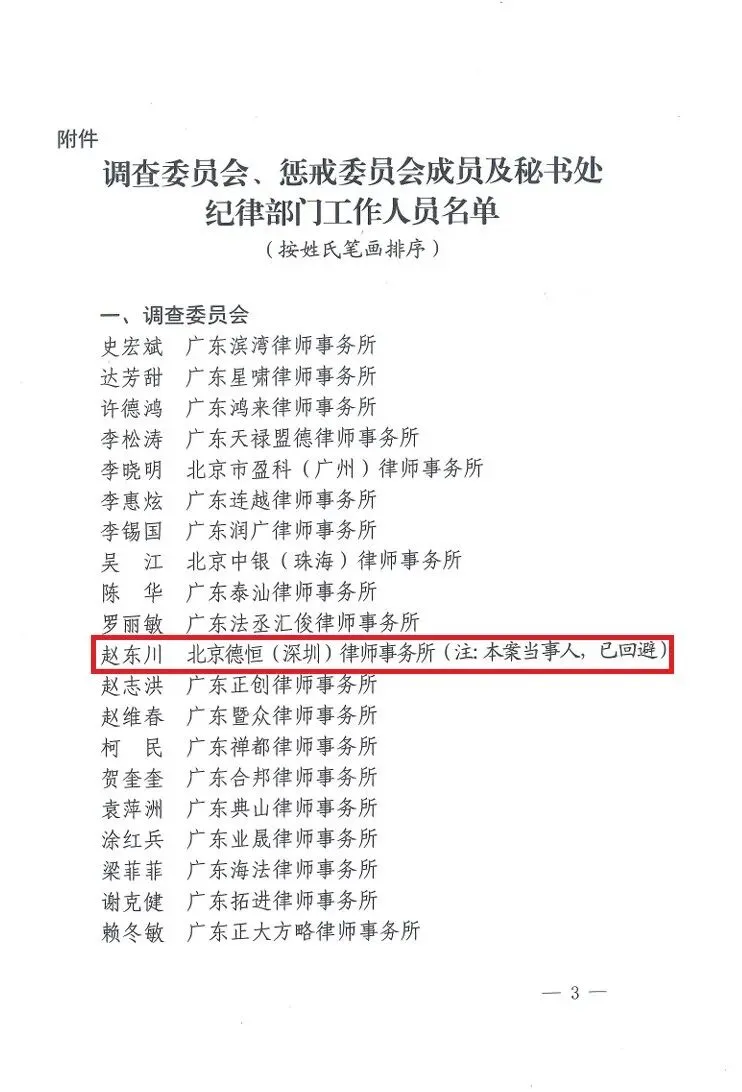 广东律协:调查省律协调查委副主任、深圳律协副会长(分管调查和惩戒委)