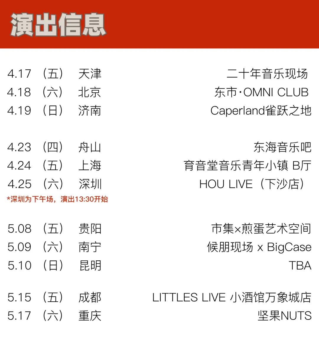 *请尽量准时到达场地兑票、入场,感谢配合!