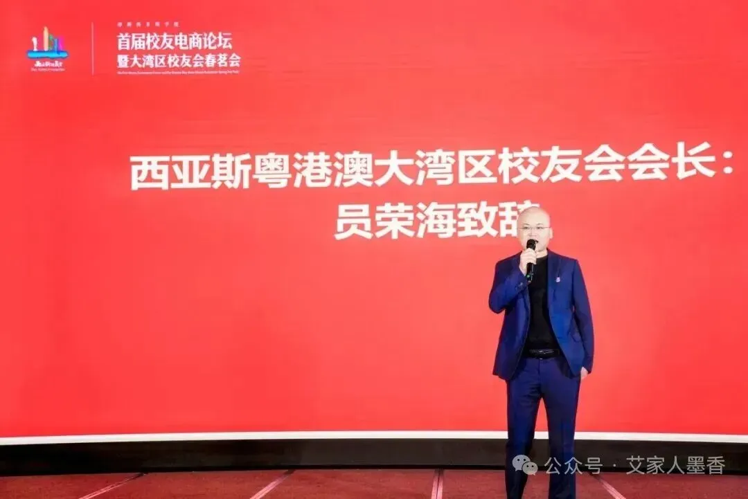 西亚斯集团(中国)总经理、1998级校友王伟的贺词里,满是对母校与校友的期许;2003级校友、大湾区校友会会长员荣海的开幕词,则勾勒出西亚斯校友在跨境电商领域的集群优势——深圳作为全国跨境电商“领头羊”,近60%的西亚斯在深校友深耕于此,从东南亚市场开拓者到AI选品领军者,他们早已成为行业变革的中坚力量。