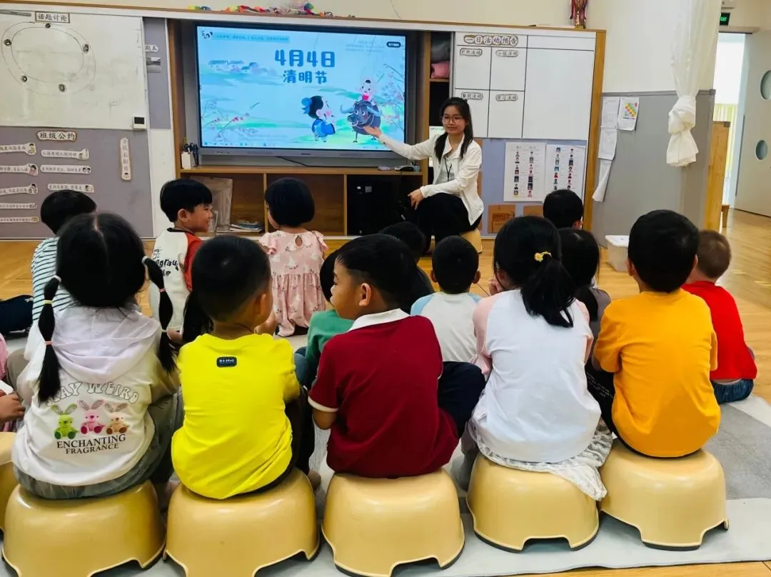 天地清明,万物洁净,故谓之清明。孩子们通过观看动画视频、聆听节气故事等形式,了解了清明节的由来与传统习俗。他们知道了清明节既是扫墓祭祖的肃穆日子,也是踏青游玩、拥抱春天的重要节气。