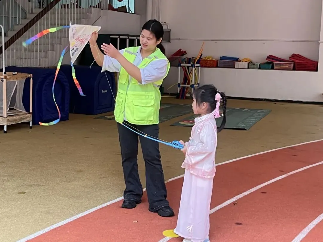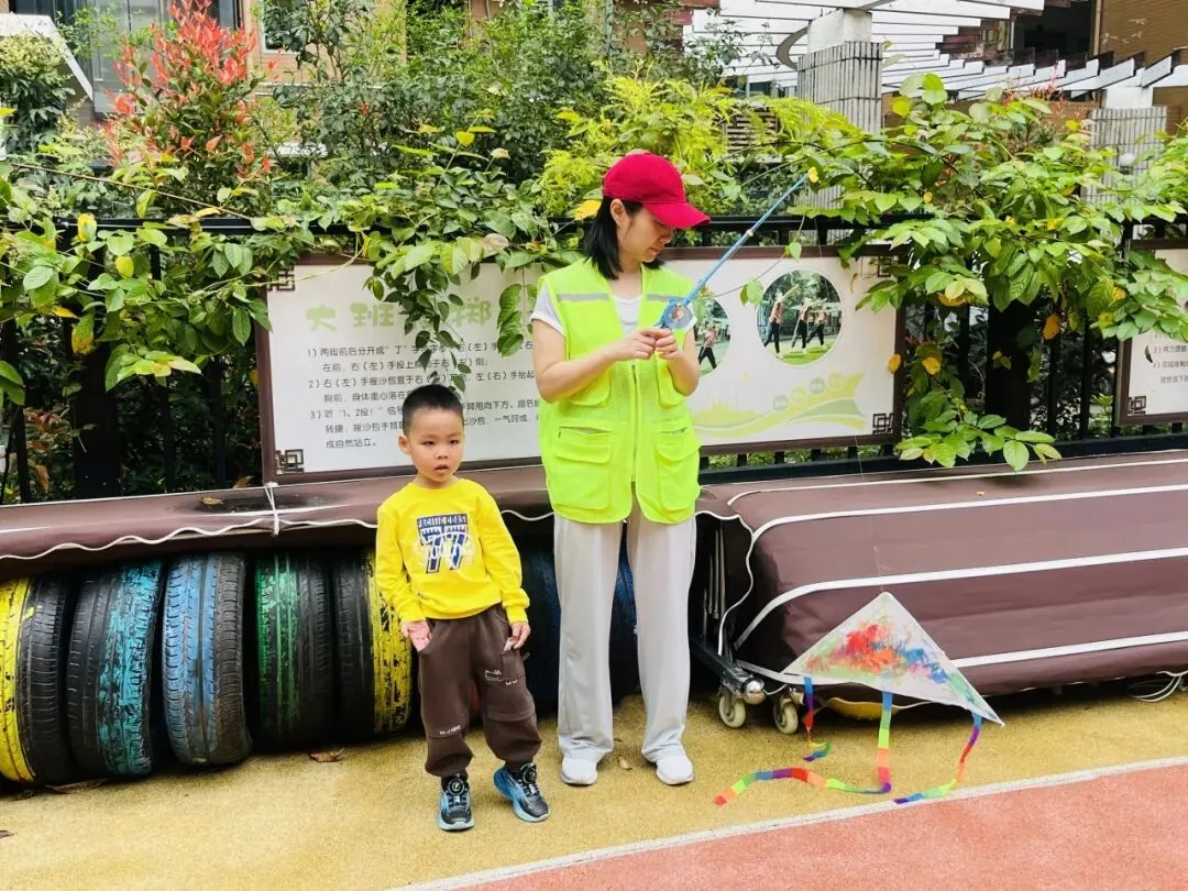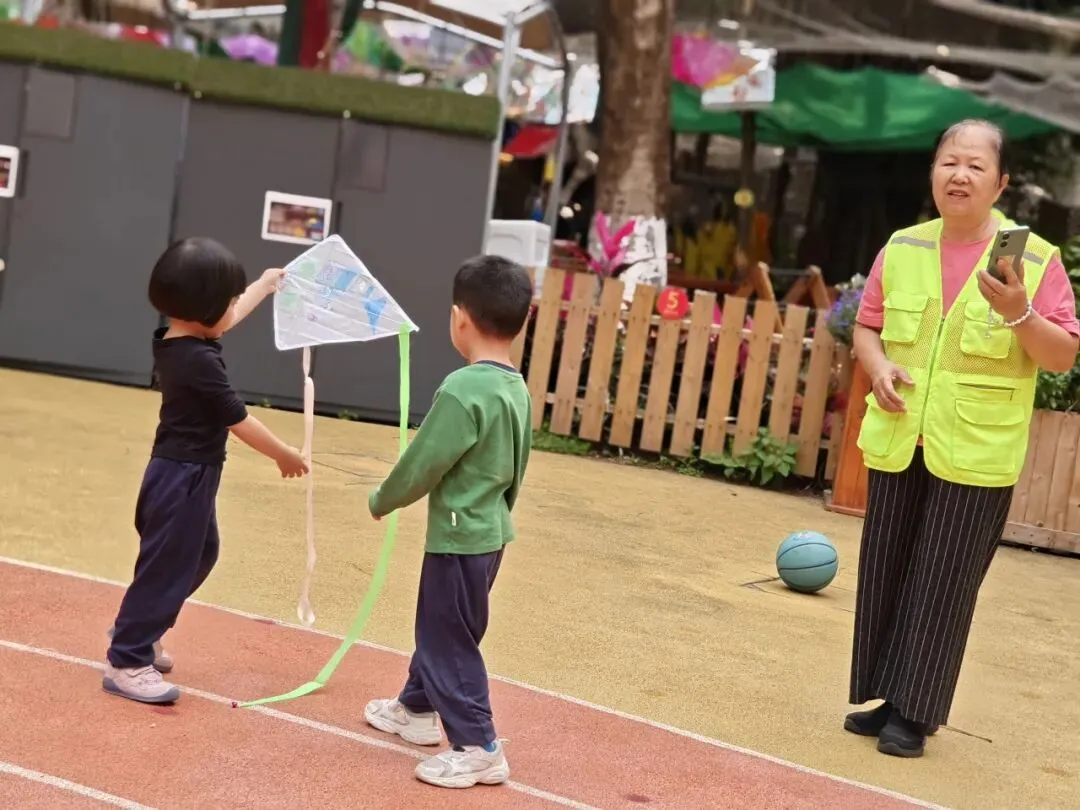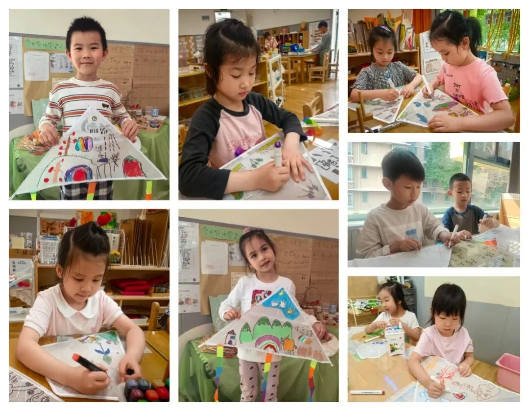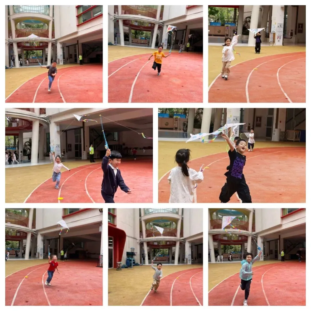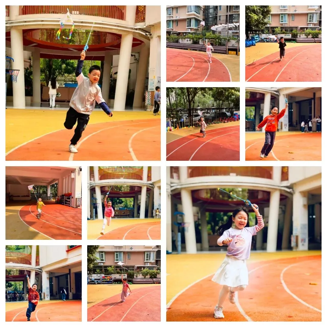 古语有云:“春之风自下而上,纸鸢因之而起,故有‘清明放断鹞’之谚。”孩子们发挥天马行空的想象力,操场上,孩子们奔跑、拉线,一只只五彩斑斓的风筝乘风而起。