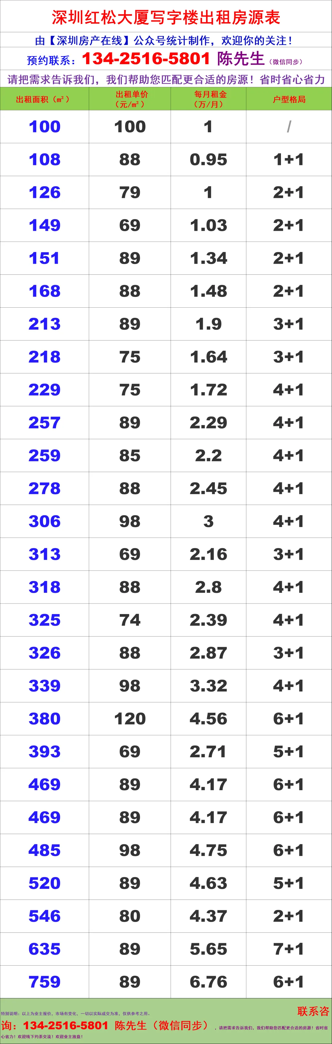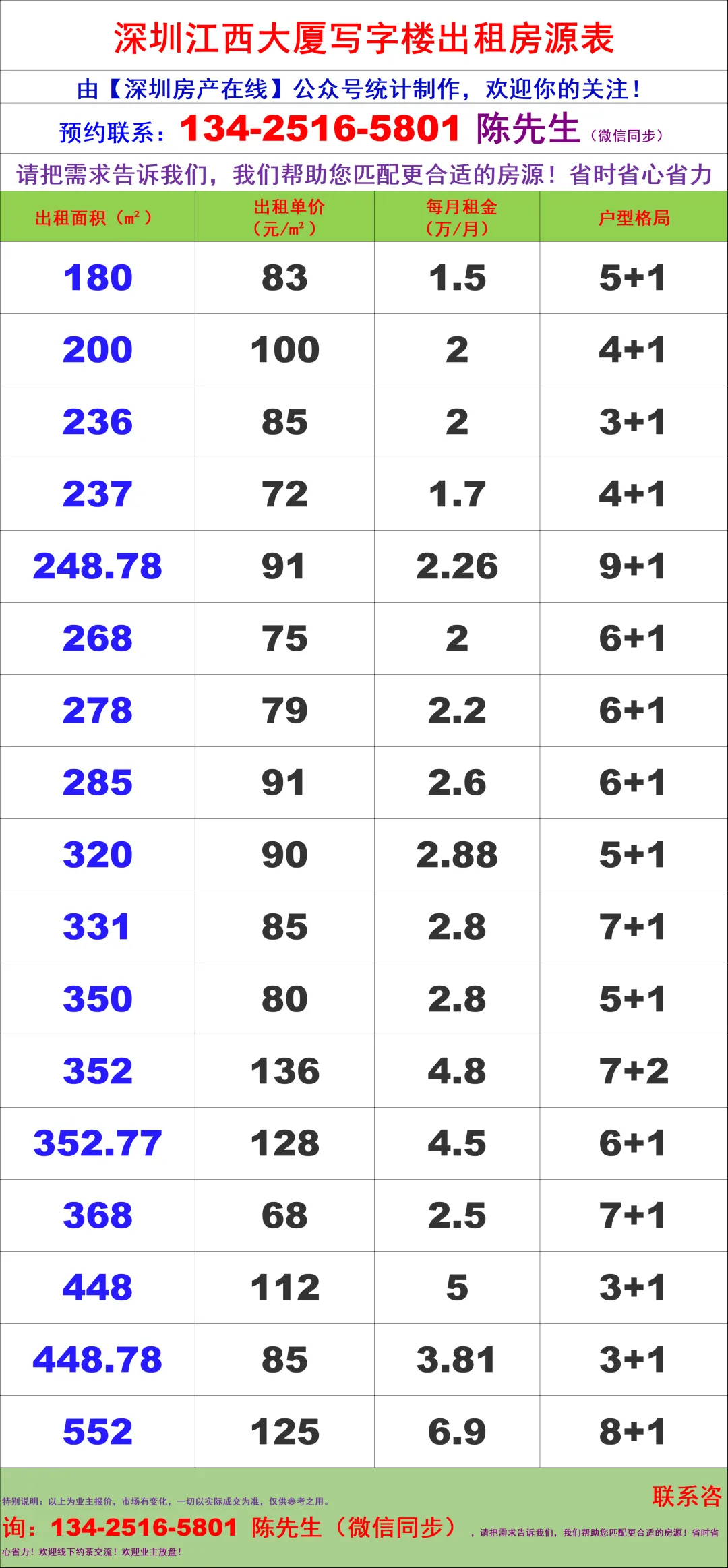 【深圳房产在线】陈经理写字楼租售团队:134-2516-5801 (微信同步)