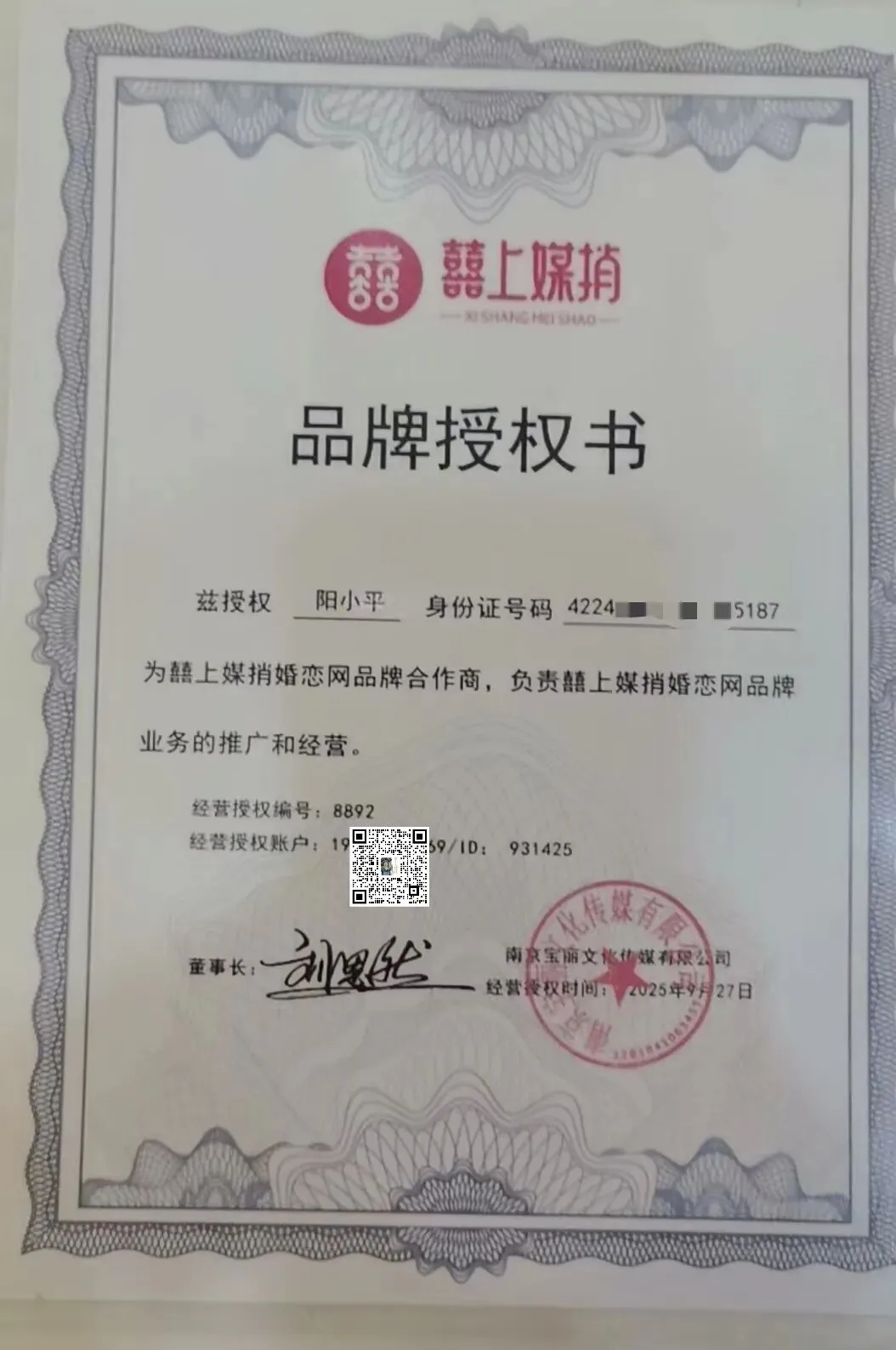囍上媒捎授权店核验(经营授权编号8892),资料三重认证