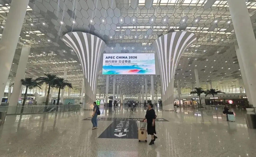 不仅是核心商圈与主干道,深圳机场、各大口岸等城市对外门户的重点区域,也在持续滚动播放APEC主题宣传内容。从抵深的第一刻起,就能感受到深圳作为东道主的满满诚意。