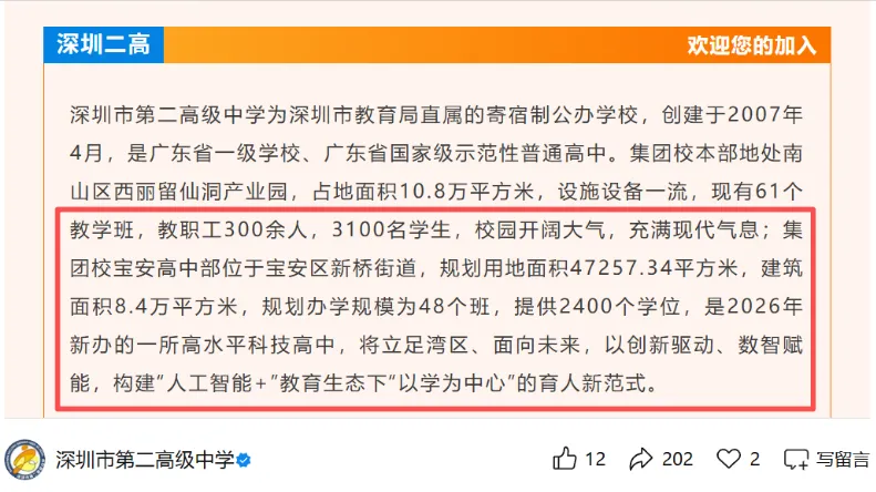 除第二十八高级中学外,深圳还有 2 所公办高中确定 2026 年秋季开学,首届招生计划已明确,覆盖宝安、坪山等区域:1. 深圳理工大学附属中学(筹)