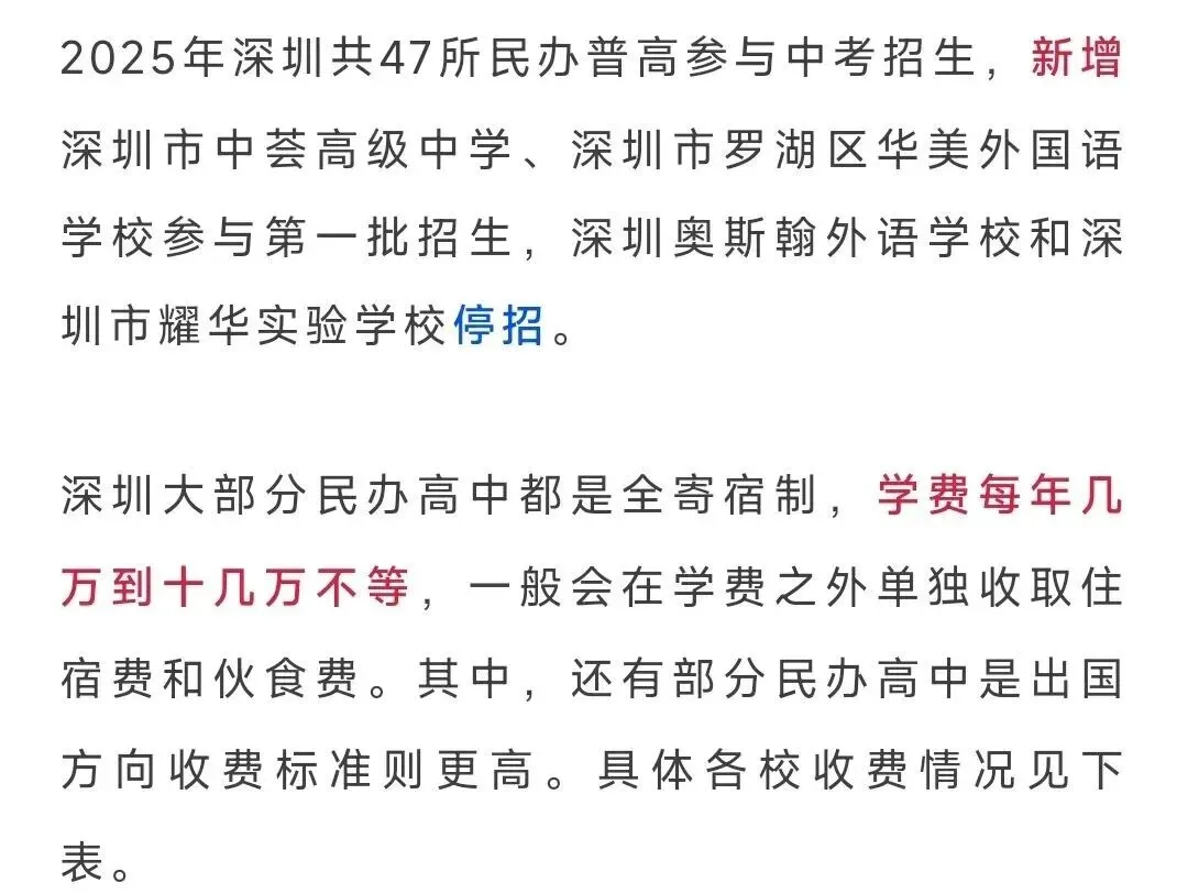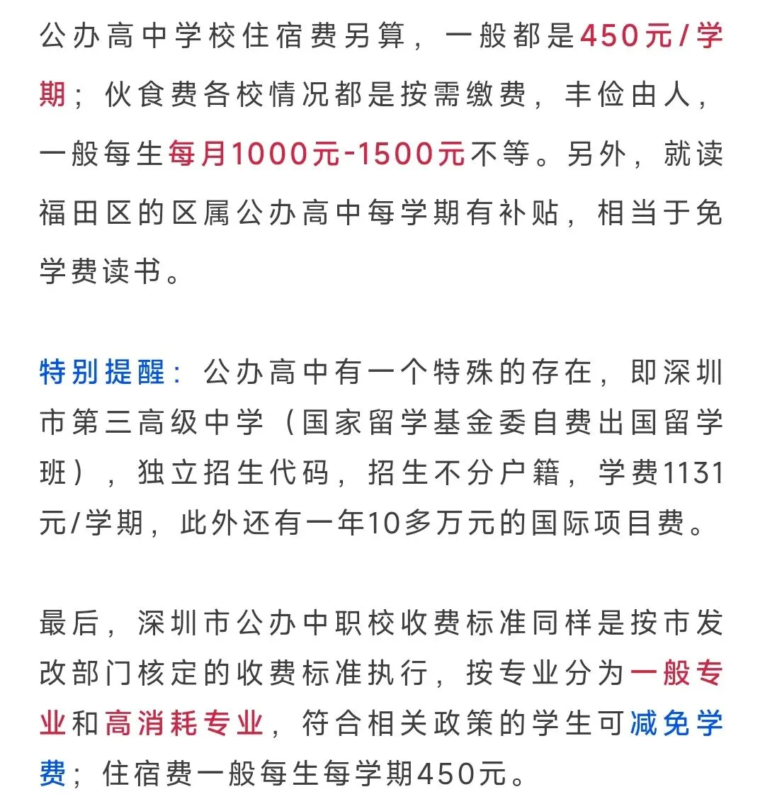 深圳现有 160 余所高中阶段学校参与中考划线录取招生,各学校的收费标准有所差异。