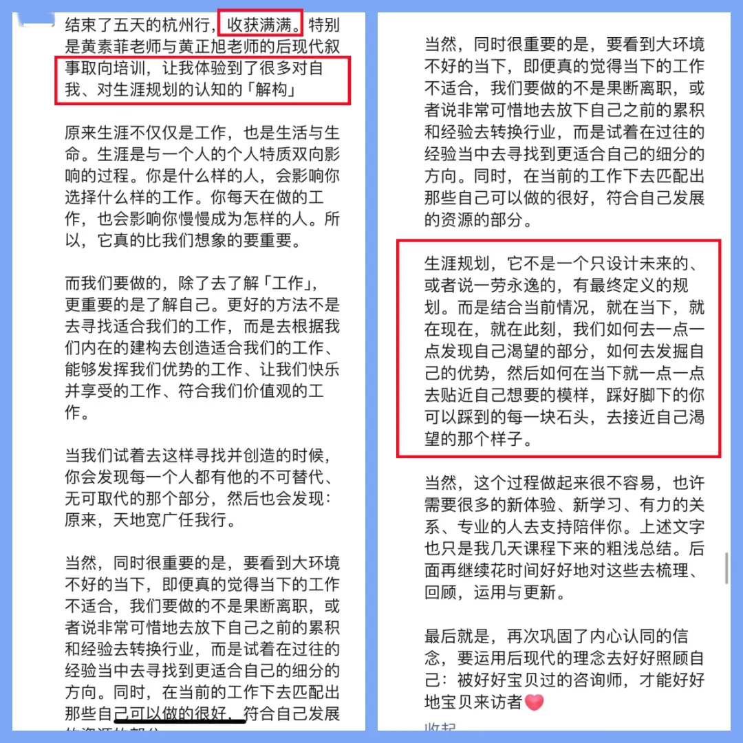 ·黄素菲和黄正旭两位老师,专业有温度,是真正的抱持,被他们骨子里散发出来的人格魅力所折服。