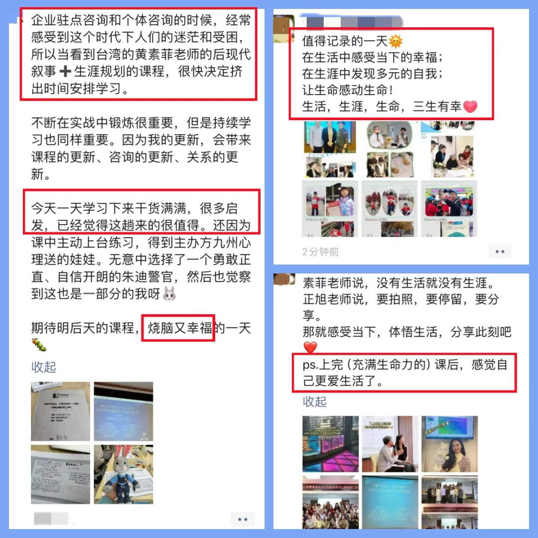 本工作坊基于华人叙事生涯领域的代表专家黄素菲教授融合叙事治疗与生涯咨询的独创体系。此前已在长沙、杭州举办过两期,收获学员的广泛赞誉与深度共鸣。