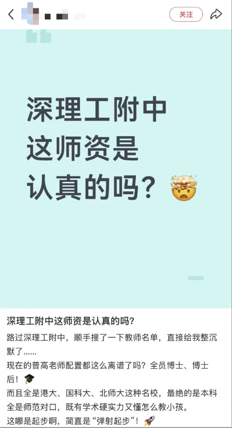该校师资起点高,2月应届生招聘要求均为博士研究生,教师均毕业于港大、国科大等名校且本科多为师范对口,兼具学术实力与教学能力;规划72班3600学位的寄宿制规模。