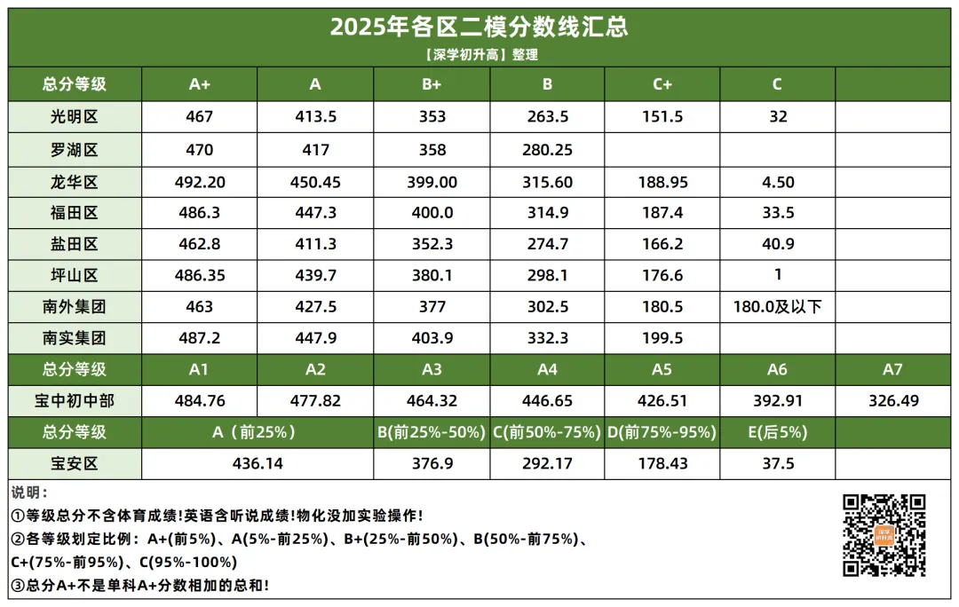 2025深圳各区二模都已考完,5月志愿填报,8个区或+4个校集团分数等级线都出来了,本文给大家进行了汇总!