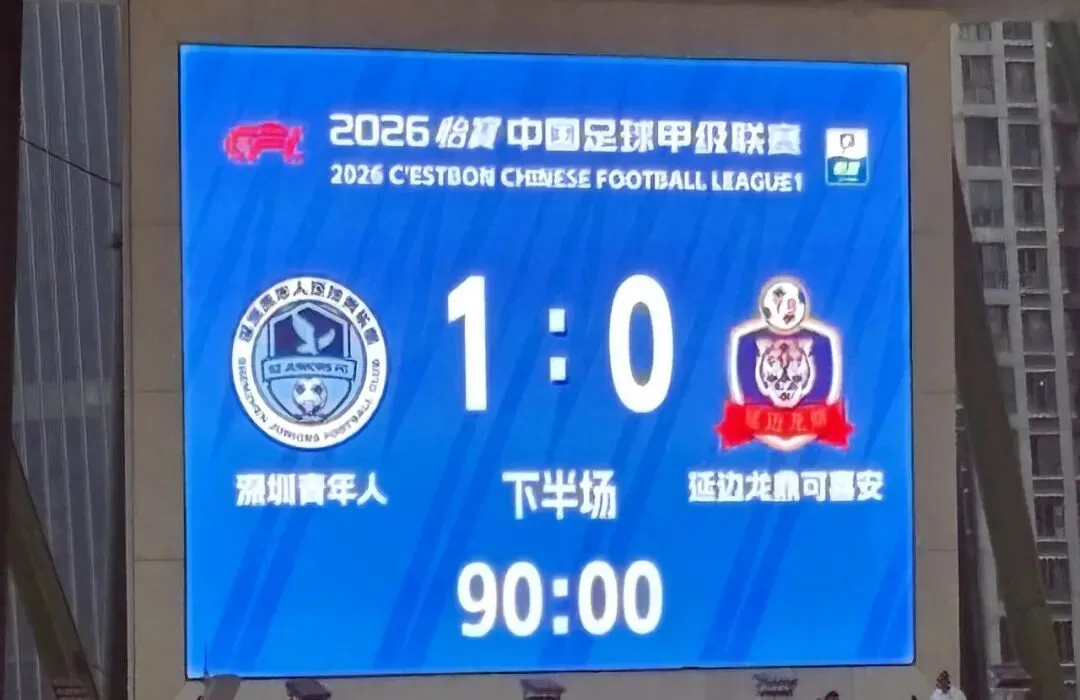延边龙鼎可喜安队客场挑战深圳青年人队。上半场,双方你来我往,互有攻守,但均与破门擦肩而过。下半场,深圳青年人队加里塔点球破门。最终,延边龙鼎可喜安队0:1不敌深圳青年人队,遭遇赛季首败。
