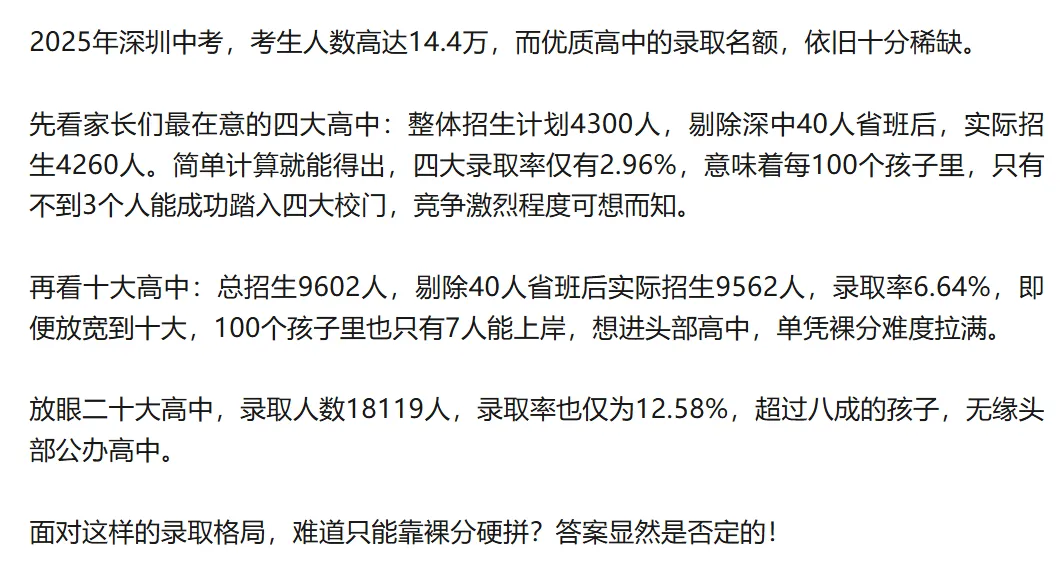 >深圳四大率不足3%!深圳中考数据里藏着一条少有人重视的升学快车道!建议收藏!