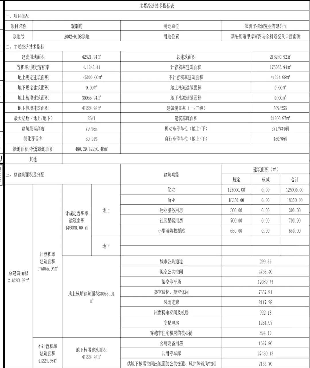 11月18日,深圳规自局披露了观潮府项目的《建设工程规划许可证》及总平面图。