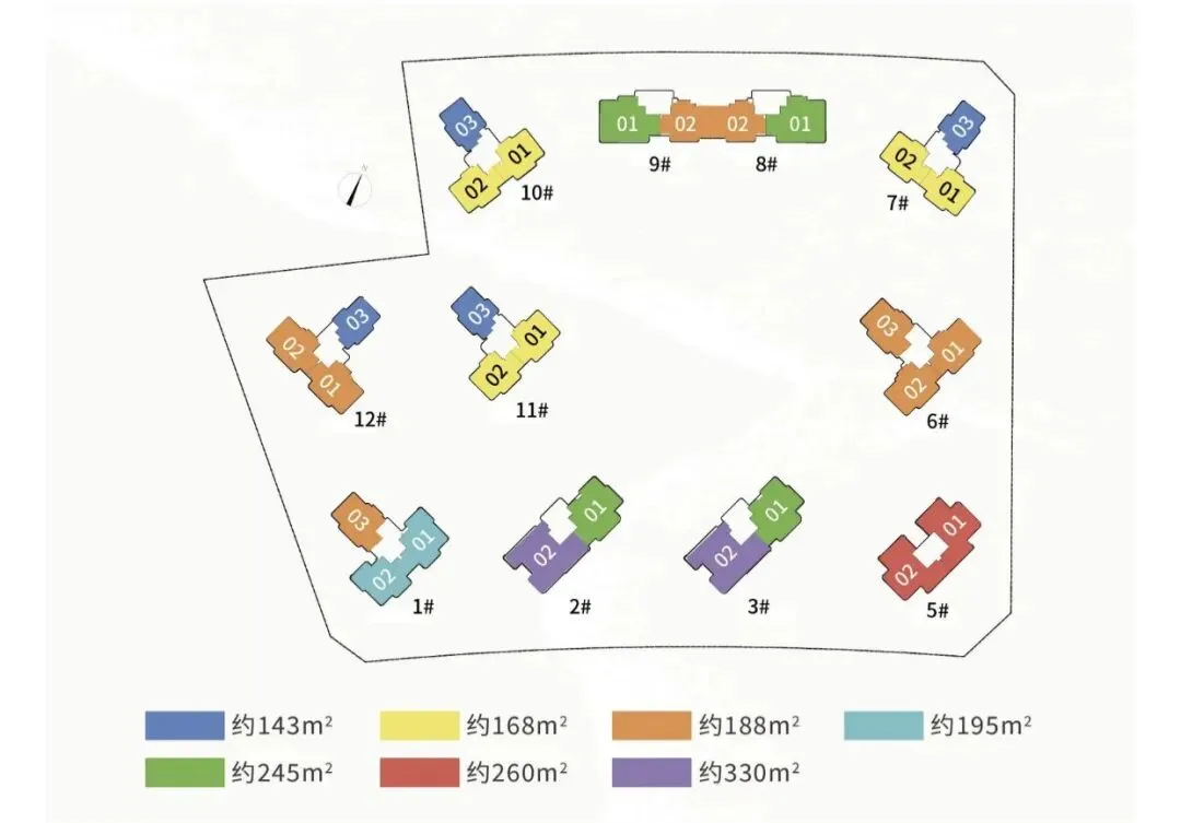 南街坊定位高端,纯大户型产品,户型面积约140-143-168-189-190-193-245-257-265-332㎡,整体户型设计和空间尺度都很不错。项目楼面价5.96万,价格大概率卖12万左右