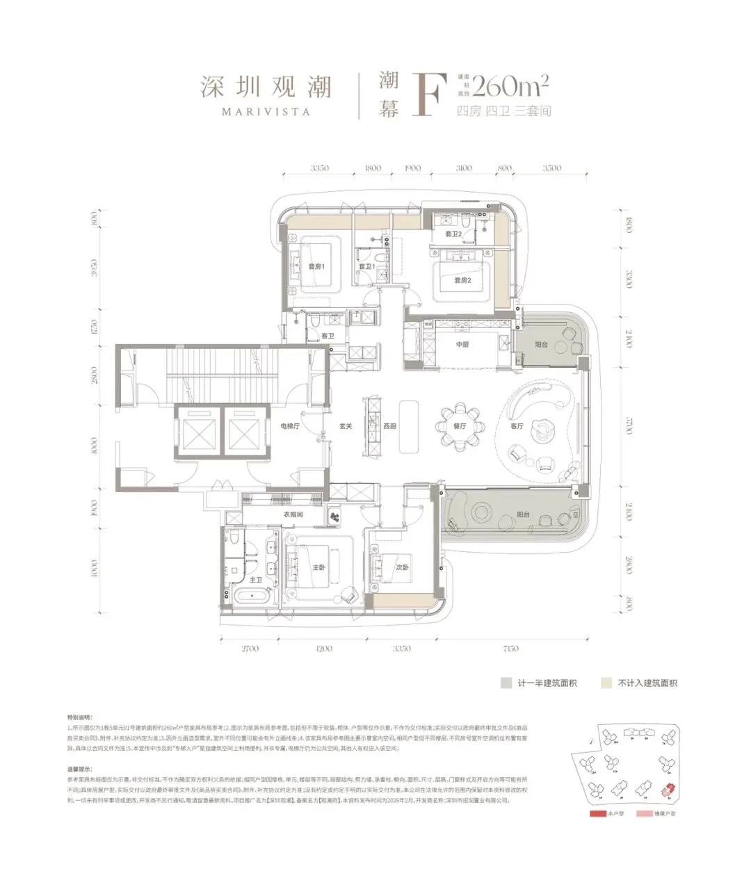 最新消息,深圳观潮首推的5/6/7单元户型图曝光,目前展示中心已经开放,4月中旬开放实体样板间,开样板房可能跟拿证同时进行,而且到时候还会开放实体园林,据了解首批样板房只针对前期诚意登记客户开放,目前已经启动前期诚意登记中,诚意登记已经超600批,有需要看样板房客户提前过来登记!预计首推3、5、6、7单元,约222套143-330㎡平层、500㎡顶复。5单元:21层,2梯2户, 建面约260㎡,还有1套500㎡顶复