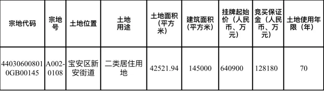 土地面积42521.94㎡,建筑面积145000㎡,挂牌起始价64.09亿,8月15日出让。