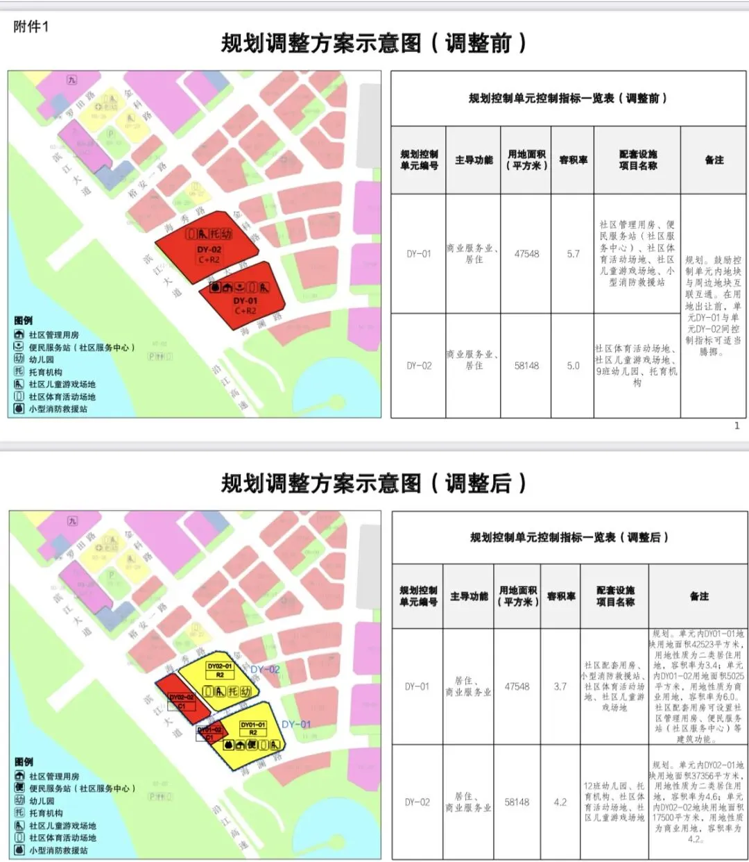(二)规划控制单元DY-02新增一条支路,内部拆分为DY02-01和DY02-02两个地块,单元用地面积为58148平方米,单元主导功能为“居住、商业服务业”,容积率为4.2,配套设施为“12班幼儿园、托育机构、社区体育活动场地、社区儿童游戏场地”,备注:规划。单元内DY02-01地块用地面积37356平方米,用地性质为二类居住用地,容积率为4.6;单元内DY02-02地块用地面积17500平方米,用地性质为商业用地,容积率为4.2。
