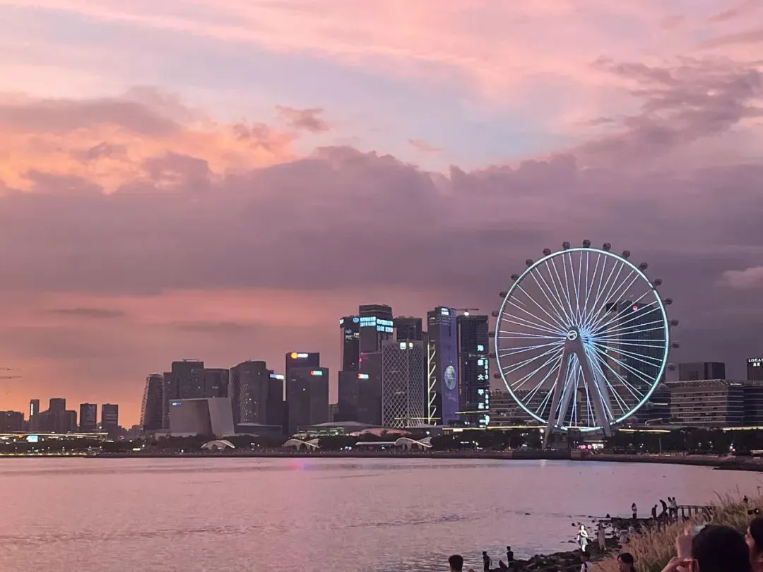 环海而建,欢乐港湾滨海文化公园总面积达80万㎡,128米高的「湾区之光」摩天轮,由伦敦眼设计团队精心打造,是深圳首座巨型摩天轮。每个轿厢拥有360°超阔全景落地窗,登至最高处,便可一览前海、大铲湾和整个西部海岸线。