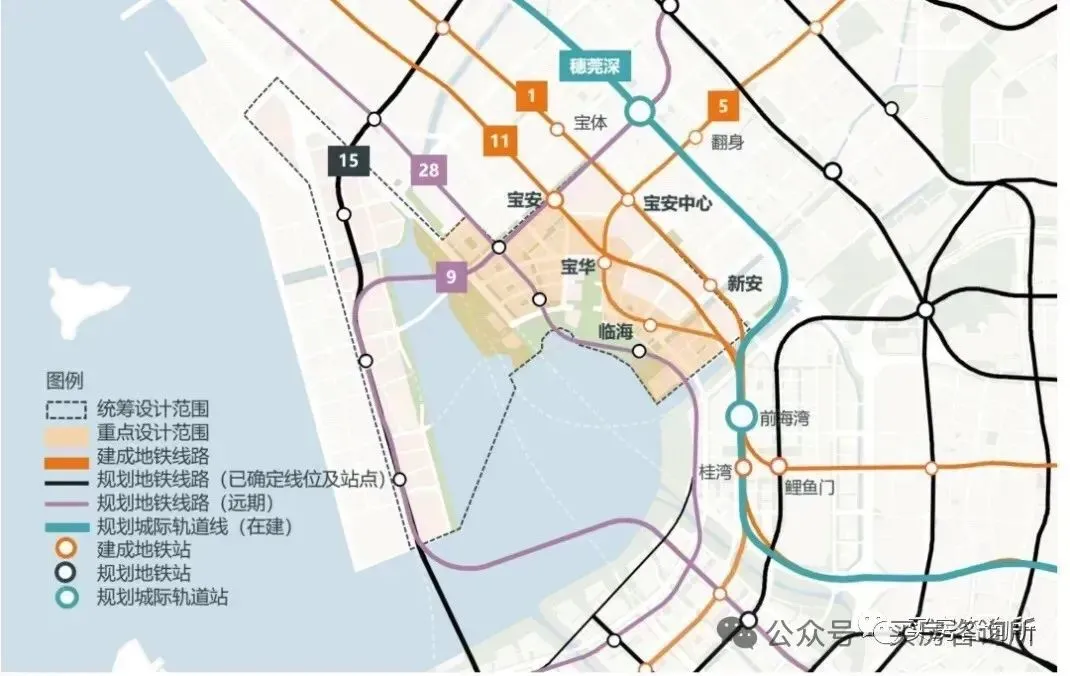 宝中是CBD+TBD的(中央商务区和科技研发服务区)双核中心,有着可以比肩甚至超越福田的优质集中的配套。