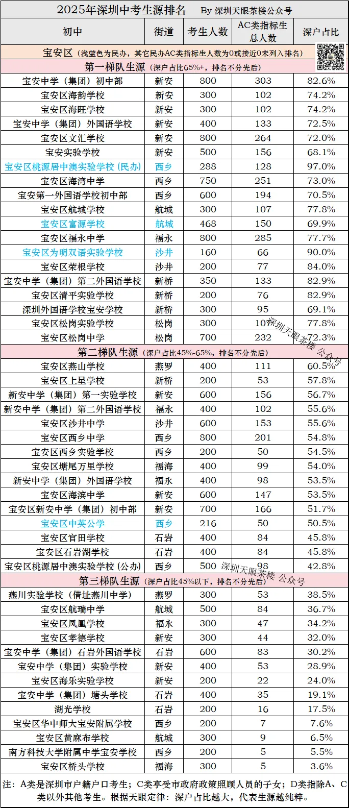 》,为方便大家直观看出深圳所有初中户籍生源比率,我们再单独做一份深圳初中——深户占比排名2026版。