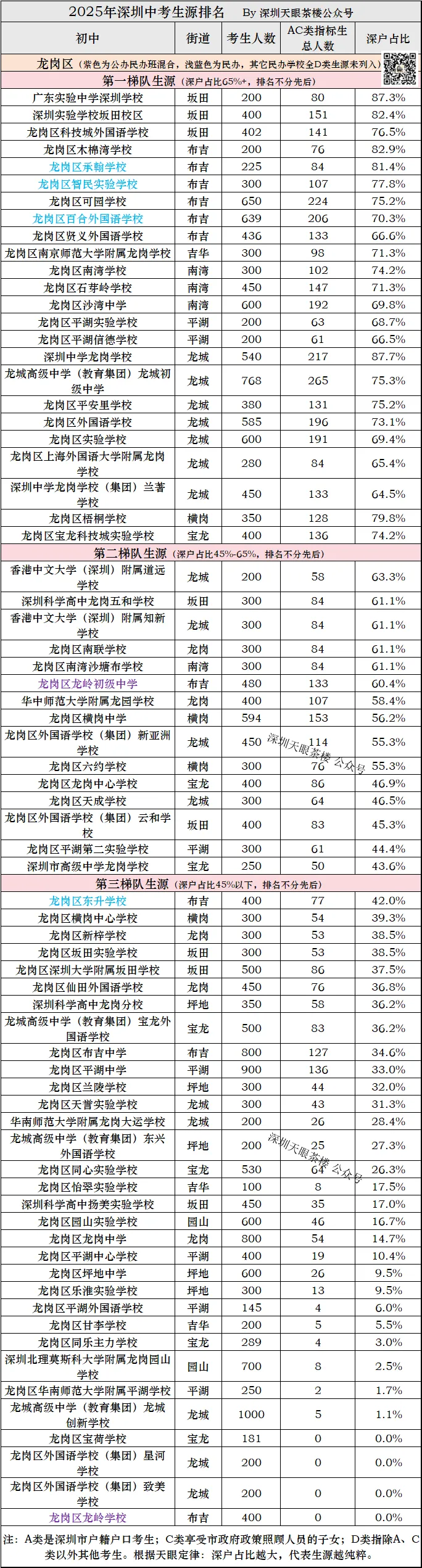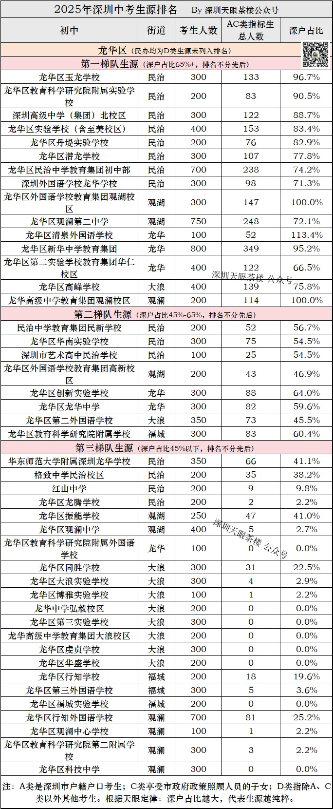 大家可以仔细研究天叔的深圳初中深户占比排名,深圳近500所初中尽在你掌握,关注天叔,后续为你们继续解密。