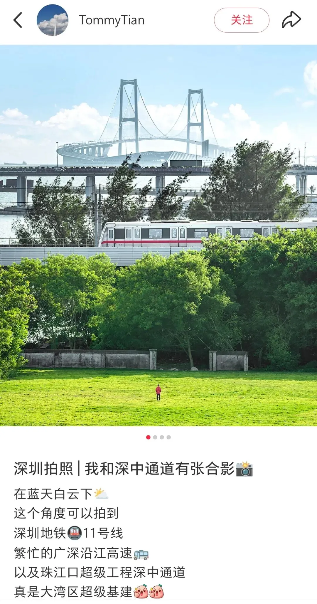 打卡机位位于11号线碧海湾站-机场站高架段。当列车缓缓驶入时,只需站在特定位置,借视觉错位,就能拍出 “手拿地铁” 甚至 “一口吞掉列车” 的趣味大片。