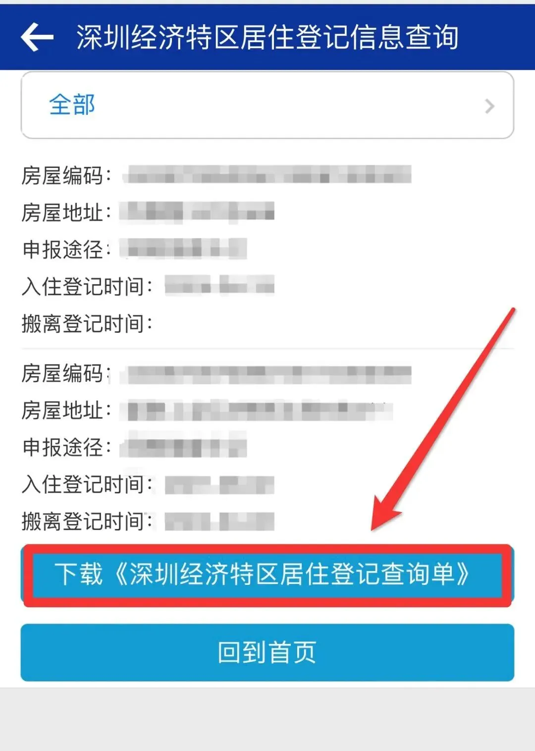 6、下载保存【深圳经济特区居住登记信息查询单】