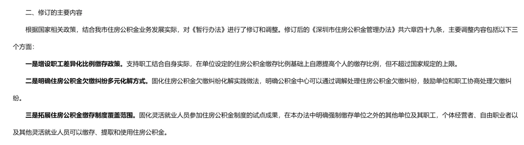针对于之前发布的规定,这次主要增加了三个方面:公司与个人差异化的缴费比例、公积金欠缴多元化调解和扩大灵活就业人员缴纳公积金。