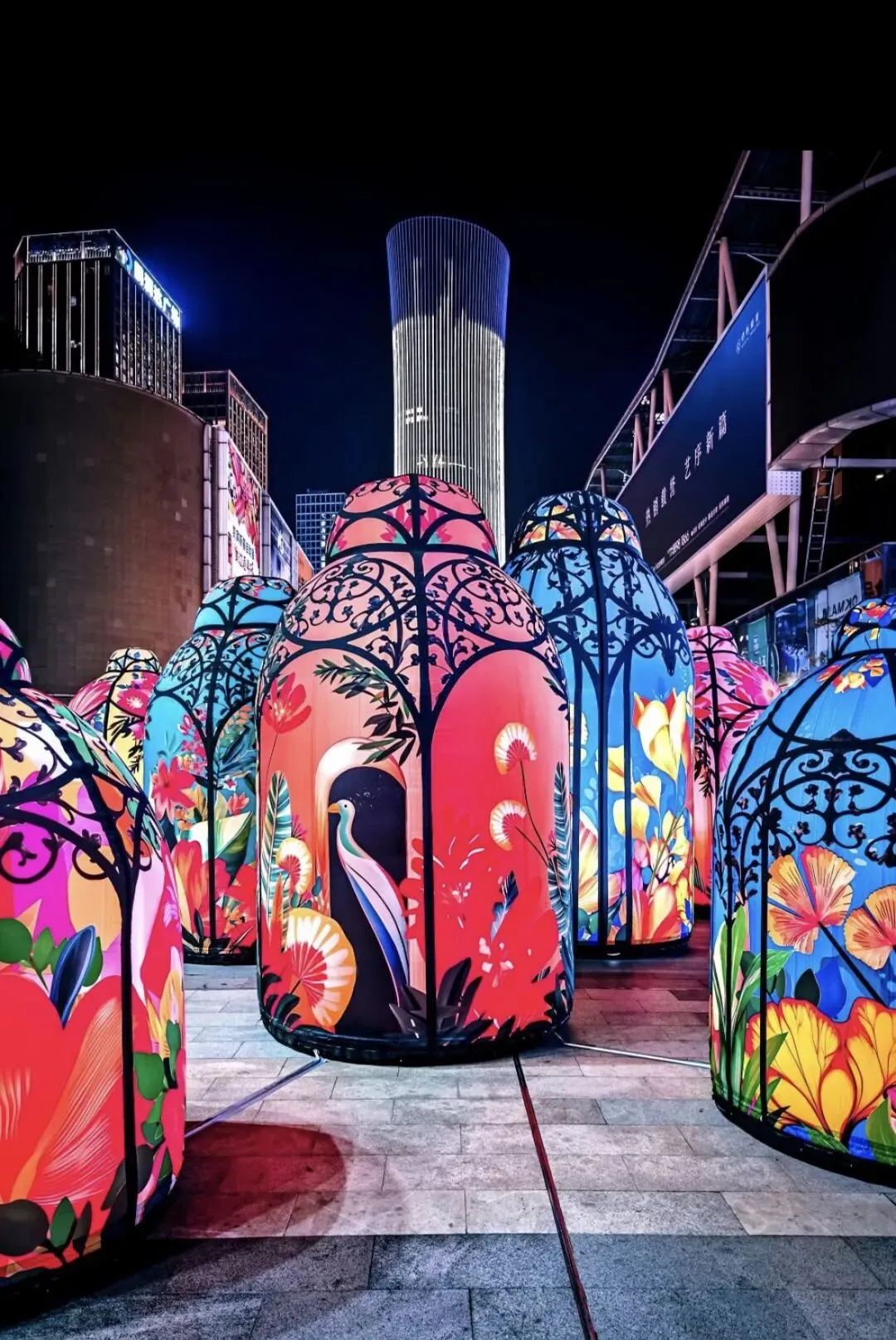走进万象城,B区的鸽子廊桥一定要去:白色鸽子造型的装置落在扶手上,阳光穿过镂空洒下斑驳影子,浪漫极了。C区的粉红灯灯笼廊桥则是暖粉色灯光,像走进童话。商场里还有透明空中连廊连接三栋建筑,适合拍科幻感照片。