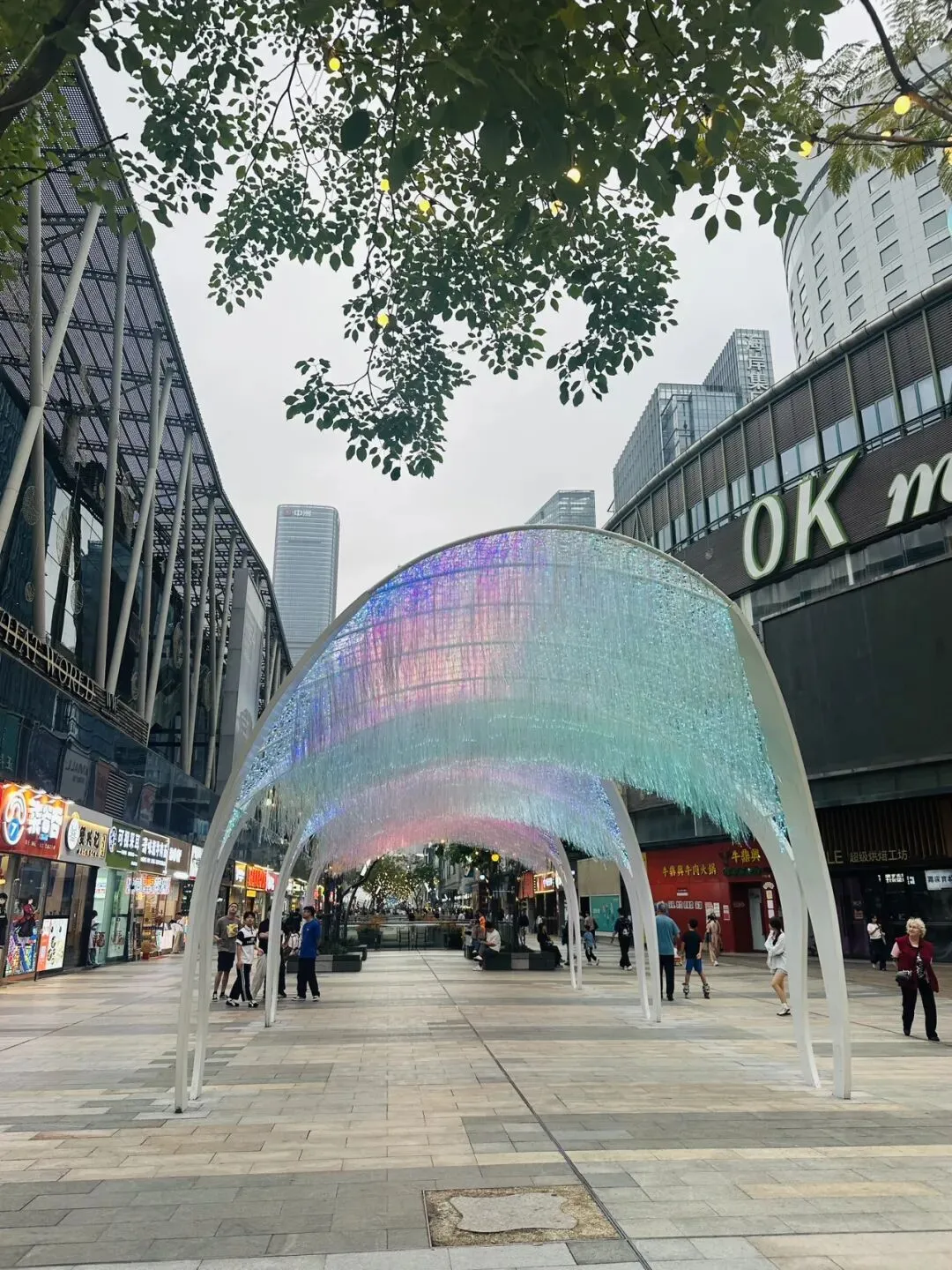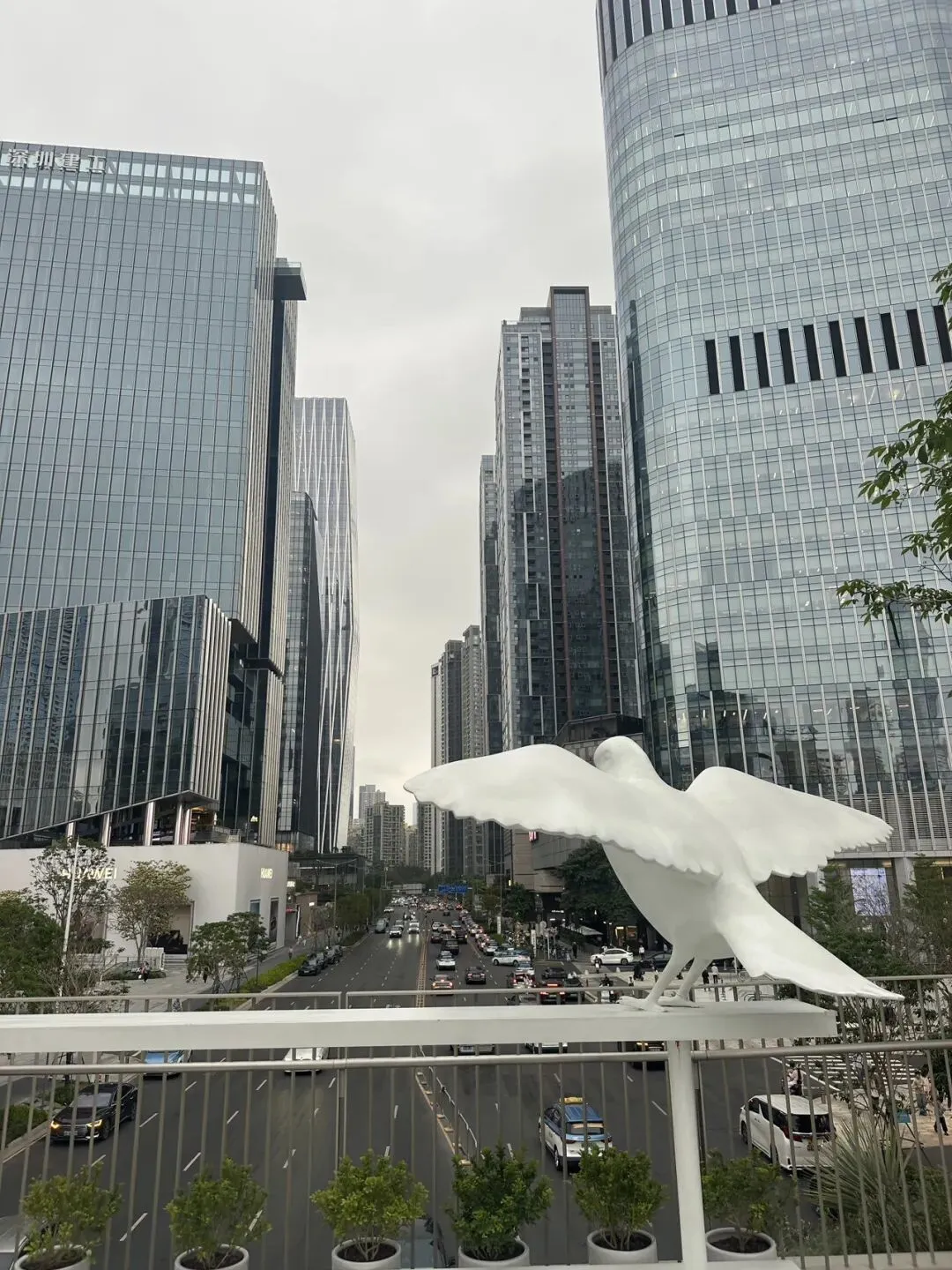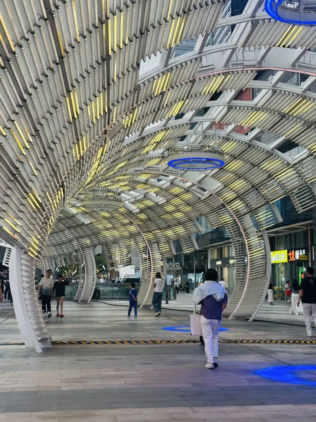 如果你想用半天时间感受深圳最前沿的城市面貌,这条从人才公园到保利桥廊的空中慢行路线再合适不过。全程约2公里,串联起公园、文化地标、高端商业和科技场景,关键是中间有一段新修的跨街桥廊,走在上面像悬浮于车流之上,两边是摩天楼群和海景,特别出片。还能亲眼看到美团无人机“空投”外卖,科技感拉满。