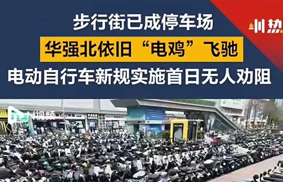 4月1日,深圳电动车新规正式实行,深圳华强北步行街被列为全天禁止停车,十万辆电动车一夜之间被清成为焦点。