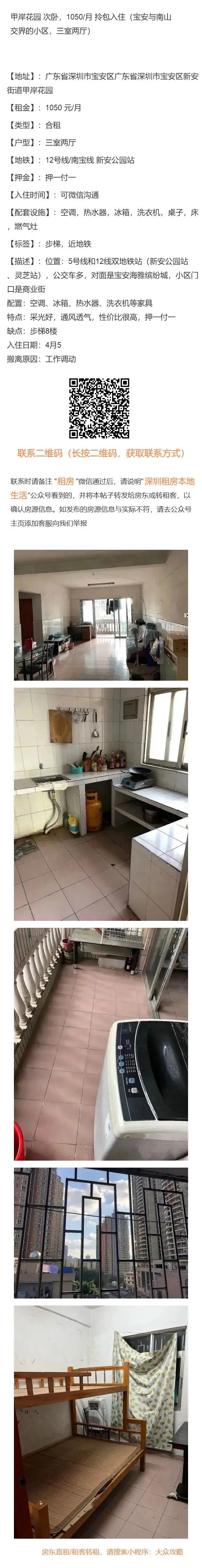 >>> 宝安区 12号线/南宝线 新安公园站 三室二厅合租1050元/月