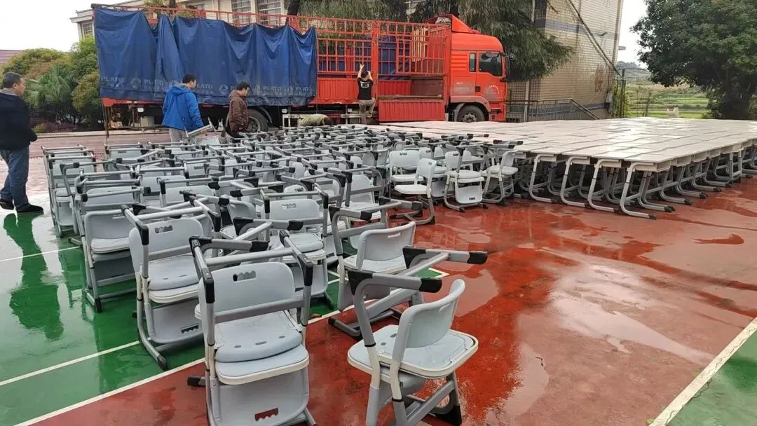 仪式结束后,与会嘉宾与红心林志愿者一同查看了捐赠物资,了解后续分配与使用计划,确保所有课桌椅、学生床切实用到学生身上,让爱心真正落地见效。