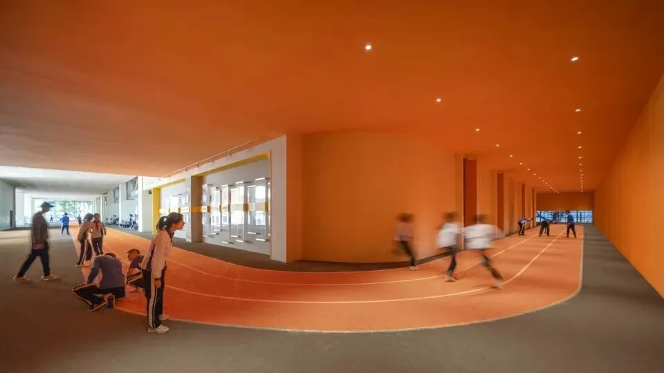 ▲从教学楼的架空庭院进入环形跑道©张超 Chao Zhang